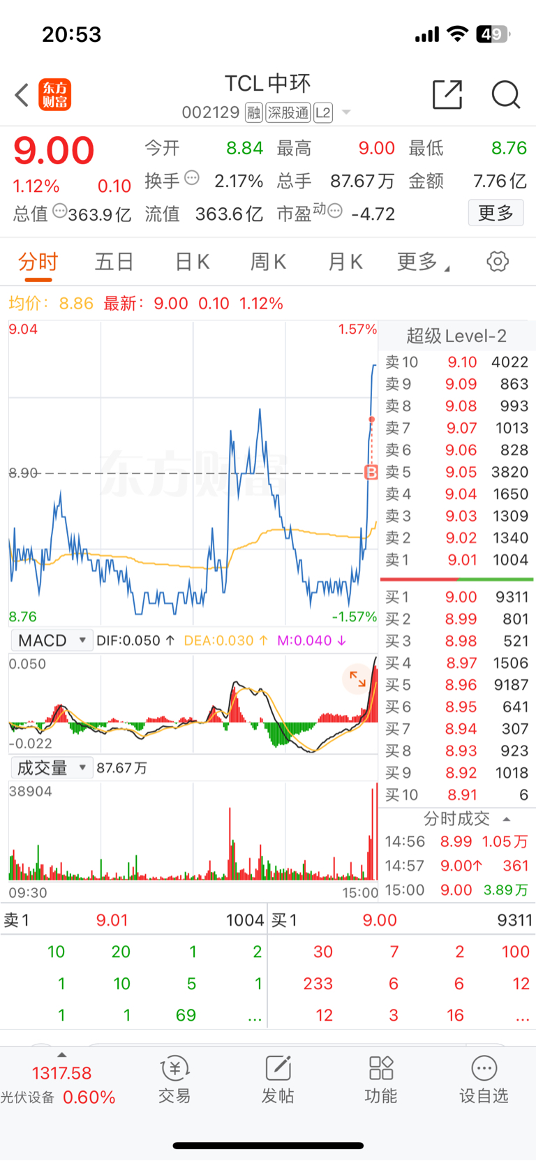 $TCL中环(SZ002129)$ 我买了一万手,明天让我先跑