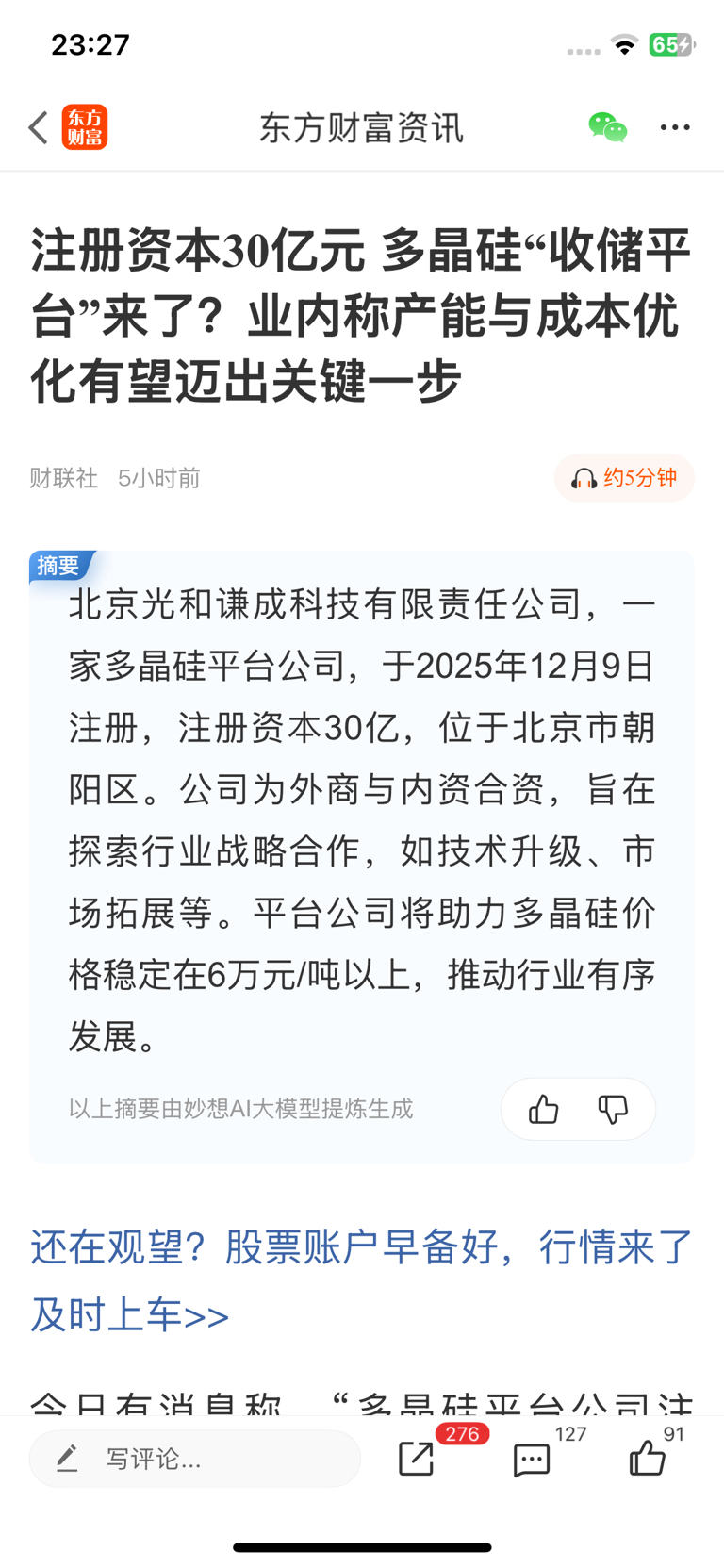 $TCL中环(SZ002129)$ 明天吃涨板