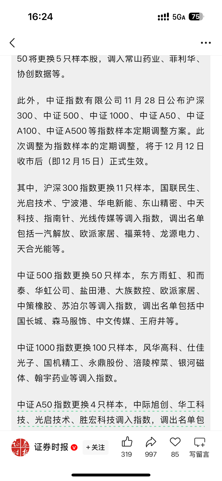 $TCL中环(SZ002129)$ 这个指数调出,今日生效。是指今天开始调出,还是今天结束?