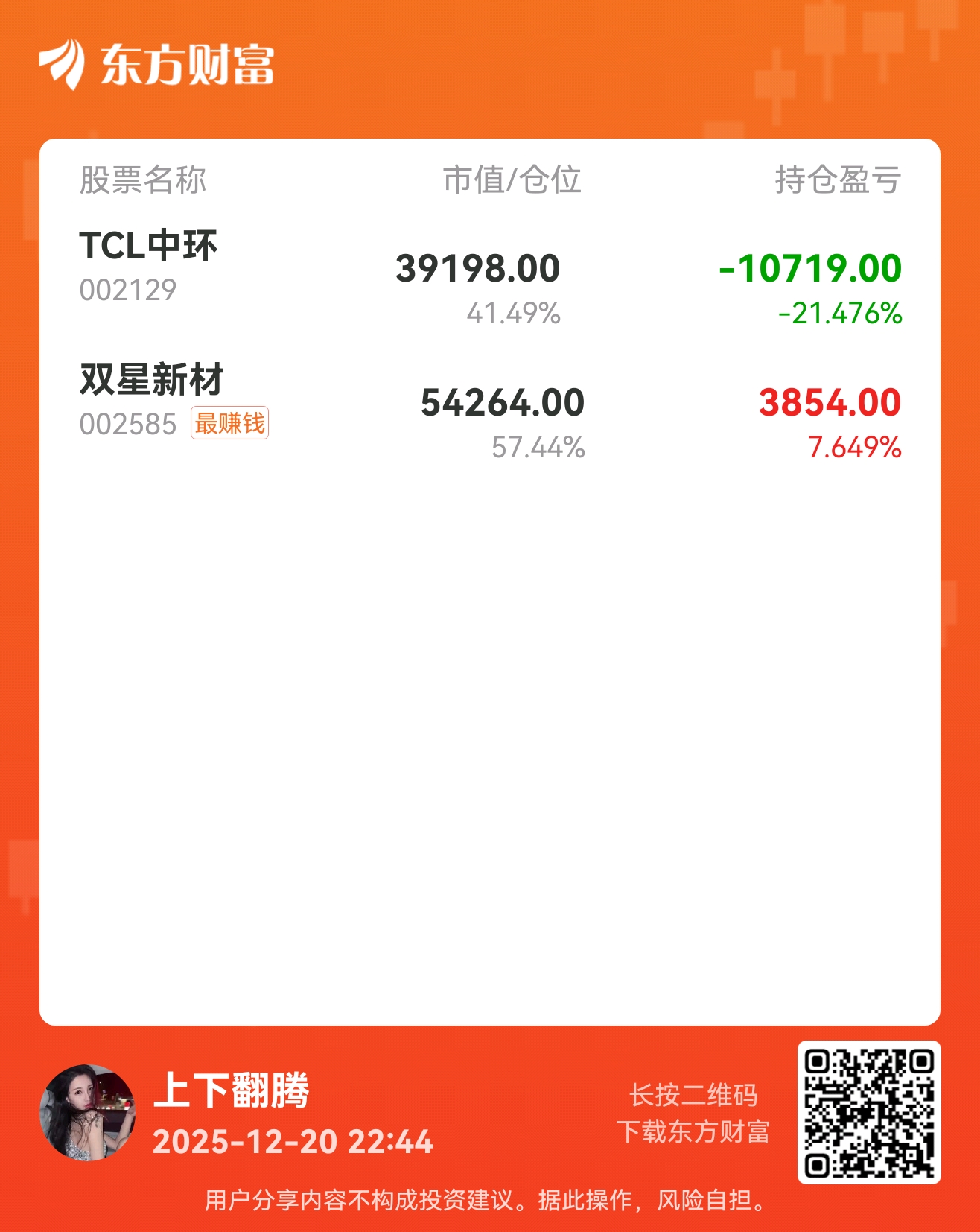 $TCL中环(SZ002129)$ 已经亏了一万块,钱没了,和这个股一样,喜欢奉献,配得起这个票的股东!