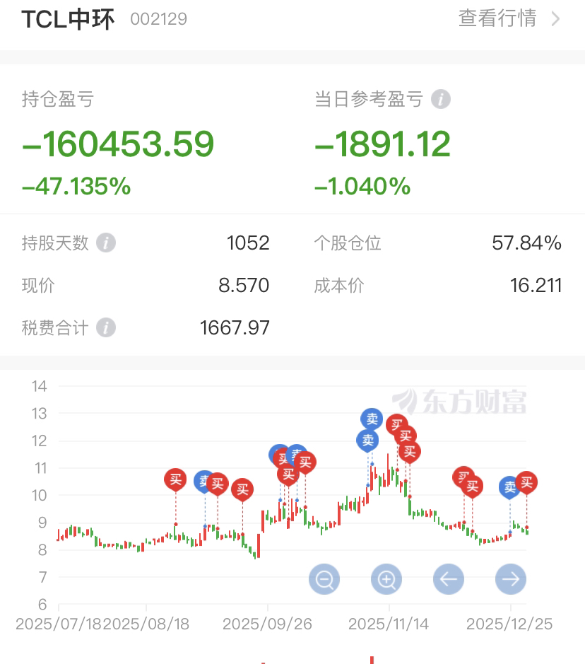$TCL中环(SZ002129)$ 3年了!希望2026你能给我希望,加油环环!!!