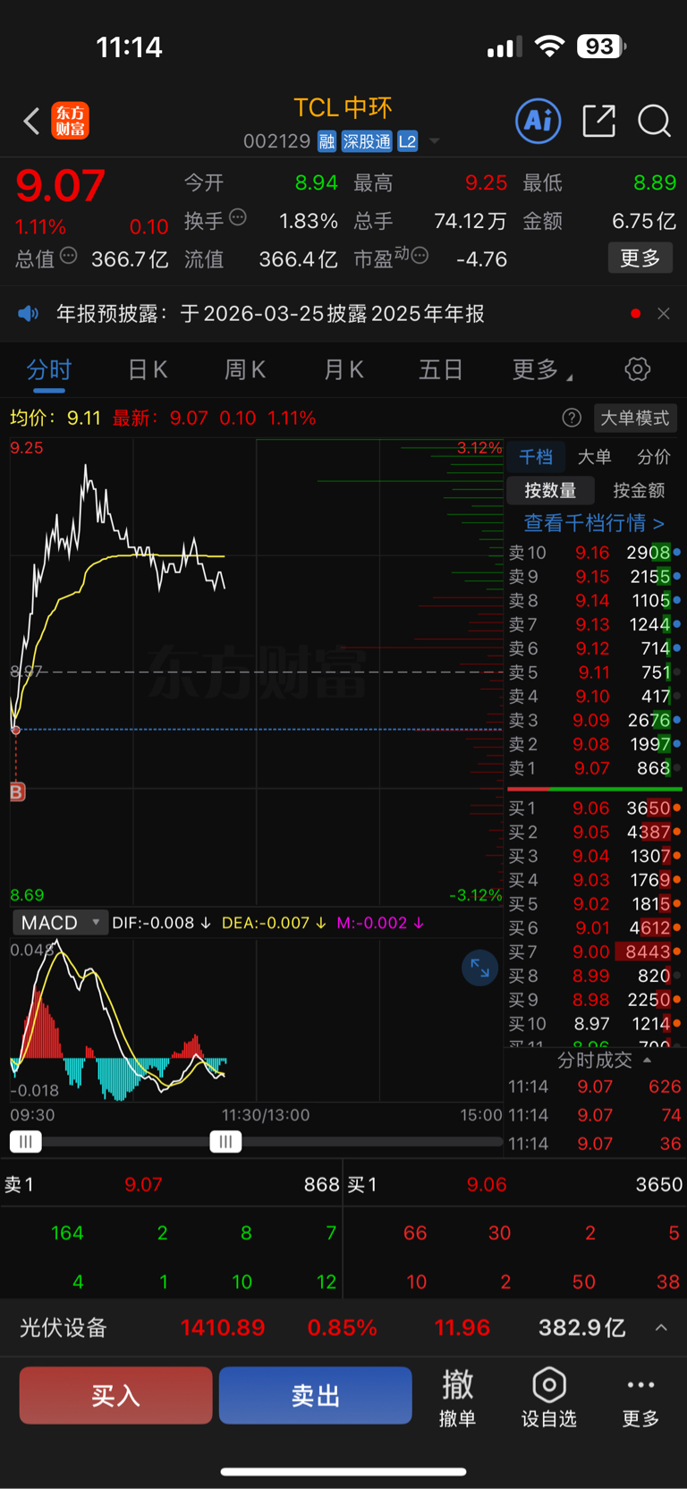 $TCL中环(SZ002129)$ 发风早上8.9买入的,现在都感觉收盘会被套住