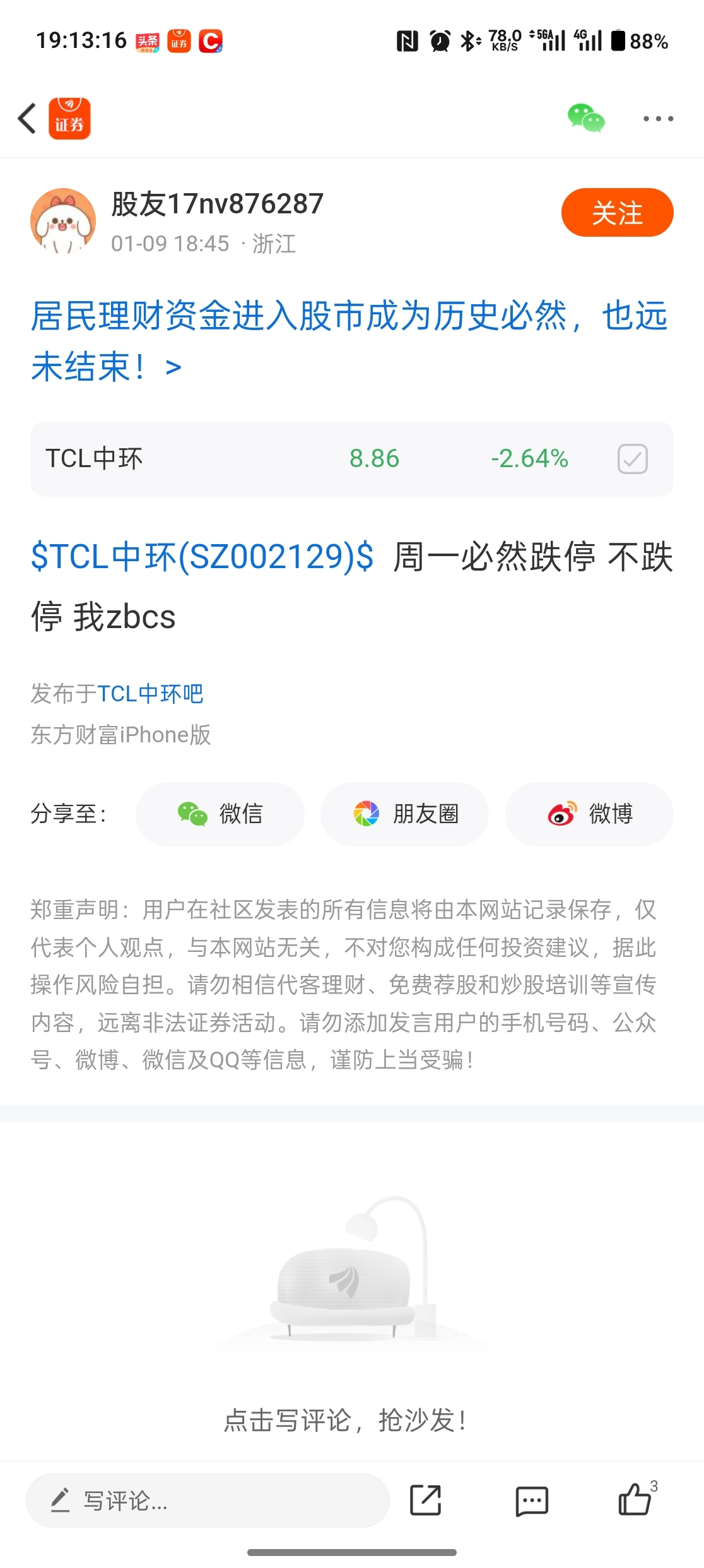 温馨提示: 1.根据《证券法》规定,禁止编造、传播虚假信息或者误导性信息,扰乱证券市场;2.用户在本社区发表的所有资料、言论等仅代表个人观点,与本网站立场无关,不对您构成任何投资建议。用户应基于自己的独立判断,自行决定证券投资并承担相应风险。《东方财富社区管理规定》