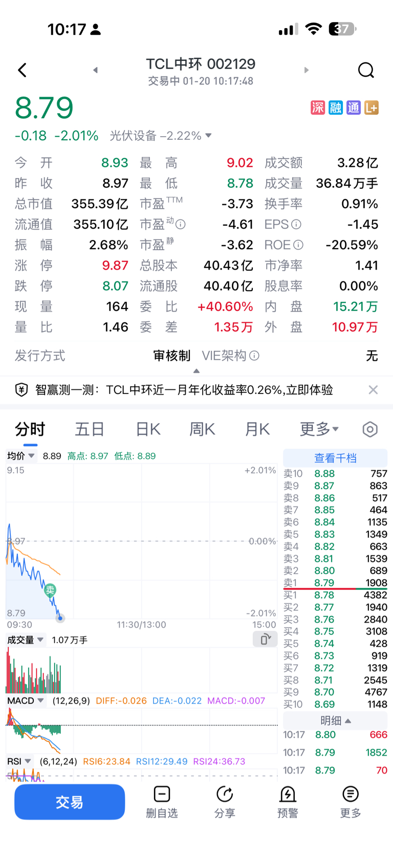 $TCL中环(SZ002129)$ 先走一半,看看8.77能不能考验.
