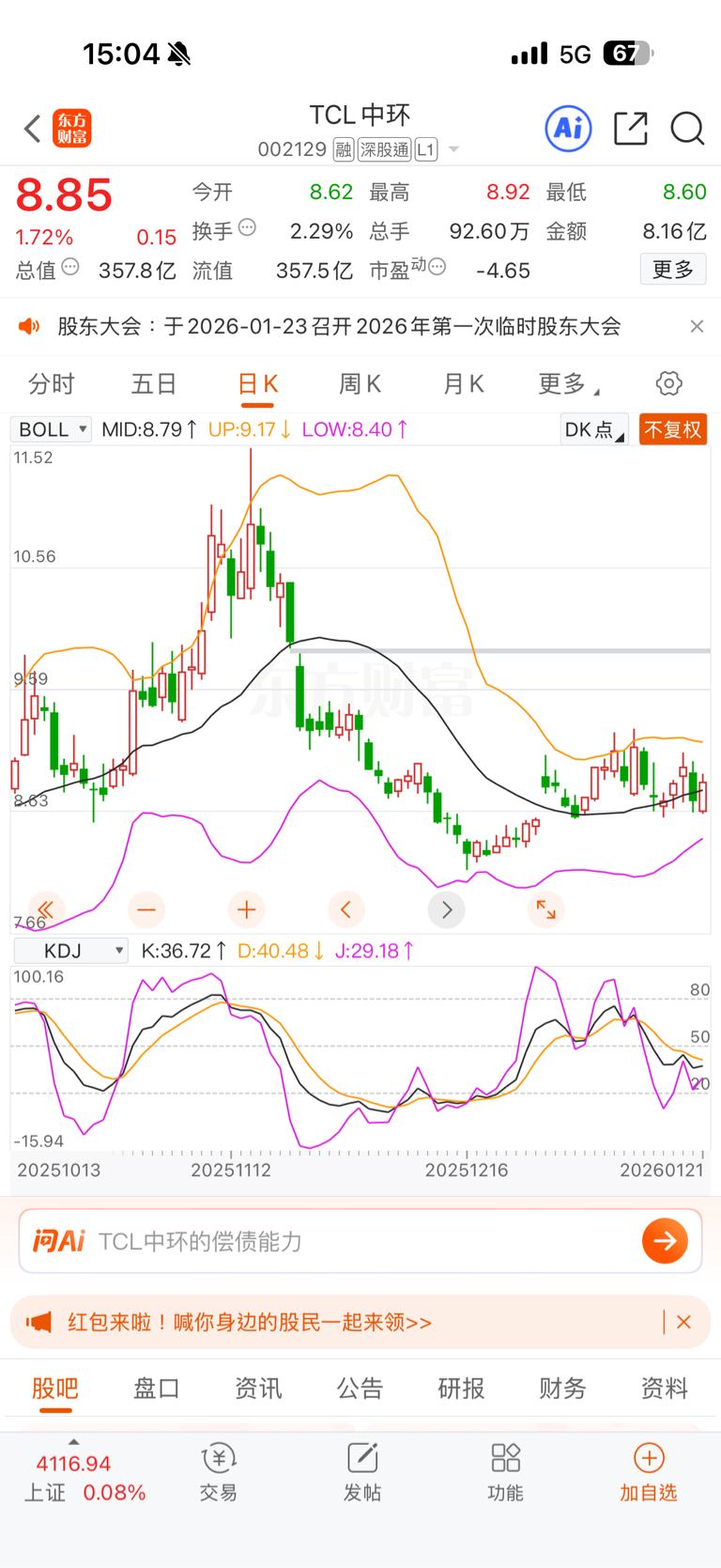 $TCL中环(SZ002129)$ 高点比昨天高点低,低点比昨天也低.看成个反弹更恰当.走了昨天加仓的部分刚刚好.