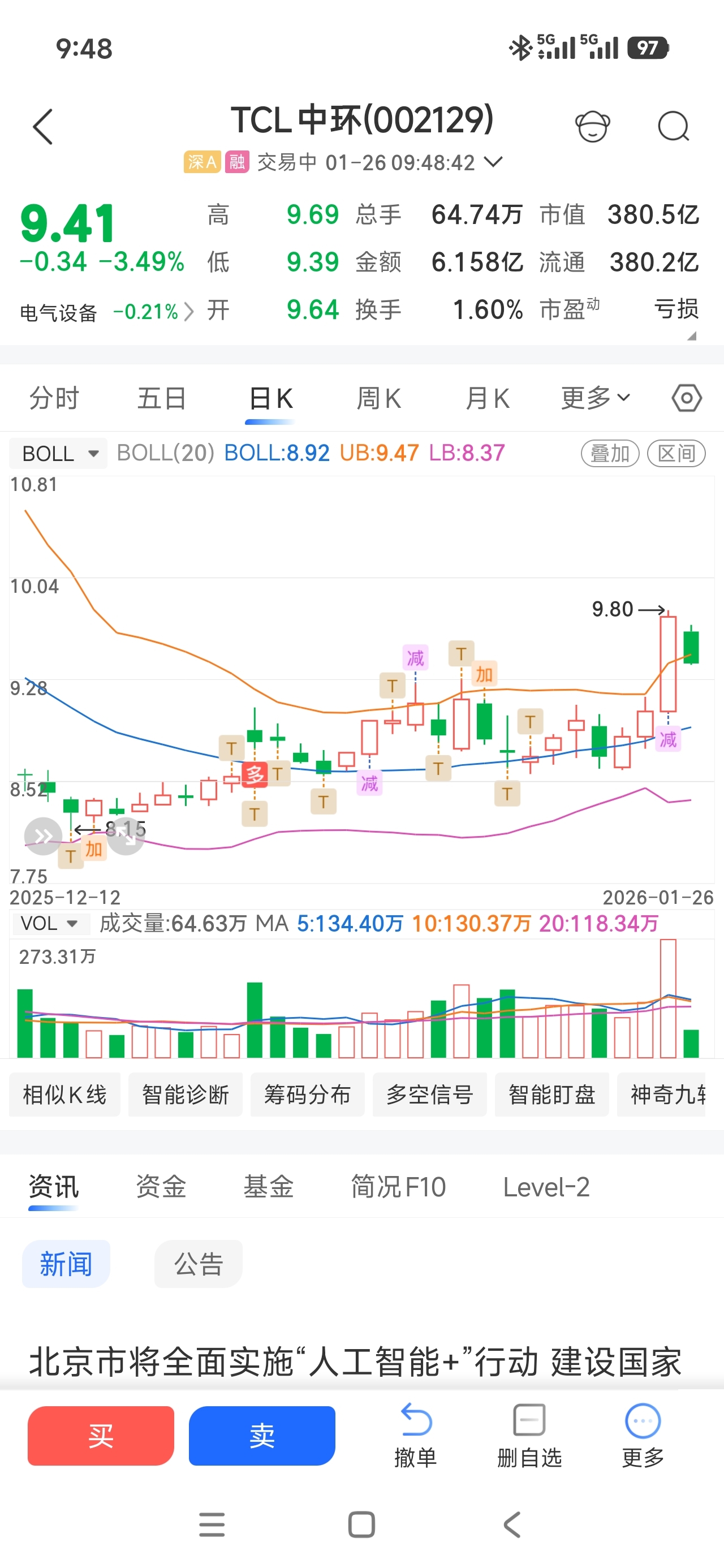 $TCL中环(SZ002129)$ 放巨量做t是比较正确的,等成交量低迷的机会。