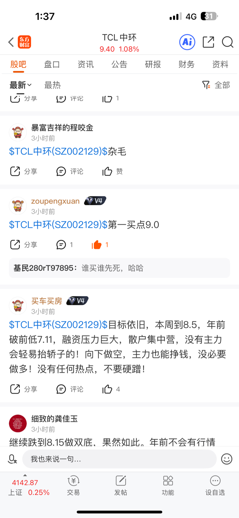 我今天是没操作,因为没有仓位了,九块钱没买进来太可惜了。四个点没吃到,妥妥的四万