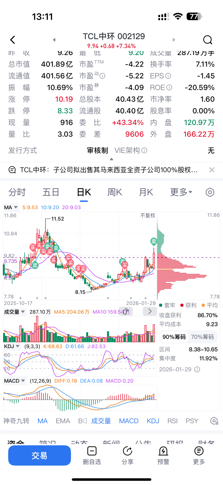 $TCL中环(SZ002129)$ 回本了,终于回本了,你再好我也不稀罕