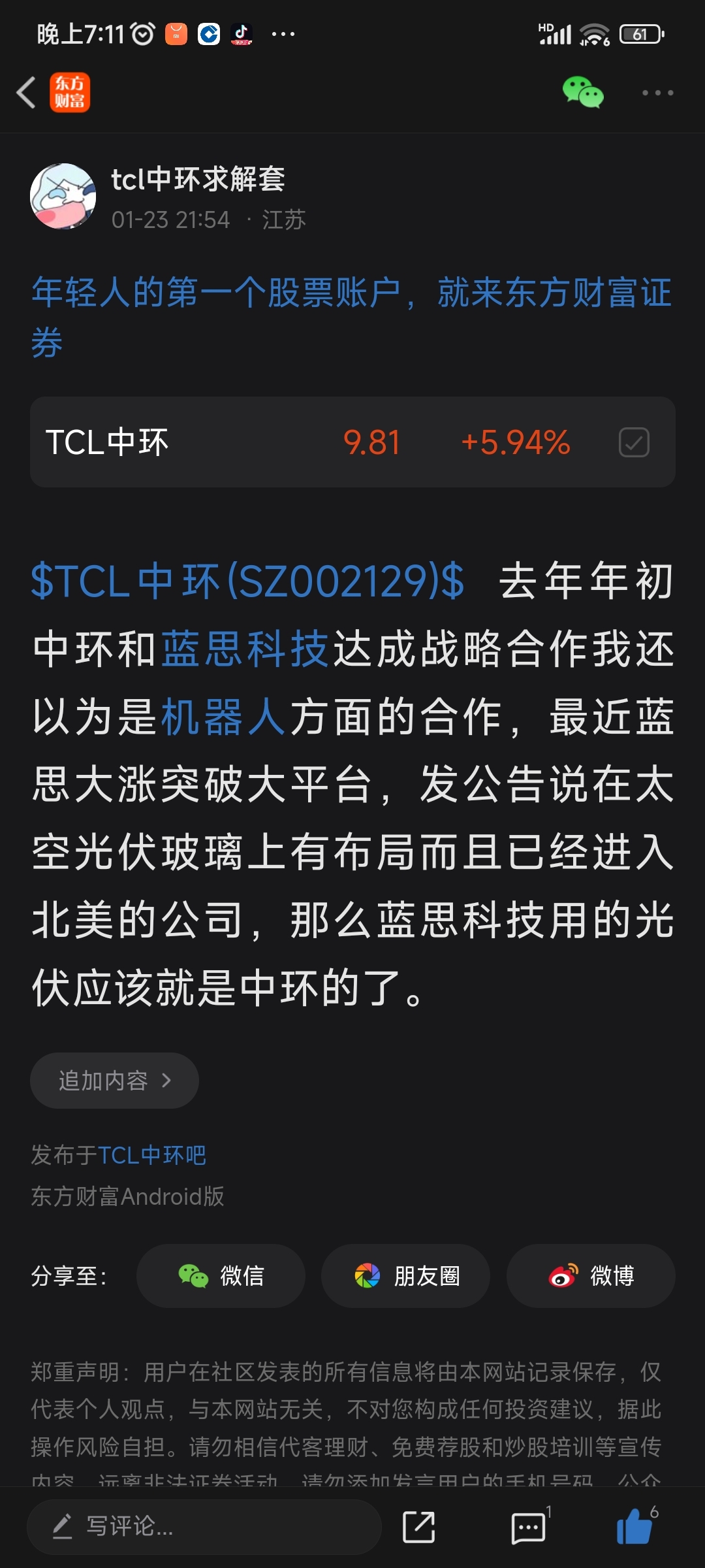 温馨提示: 1.根据《证券法》规定,禁止编造、传播虚假信息或者误导性信息,扰乱证券市场;2.用户在本社区发表的所有资料、言论等仅代表个人观点,与本网站立场无关,不对您构成任何投资建议。用户应基于自己的独立判断,自行决定证券投资并承担相应风险。《东方财富社区管理规定》