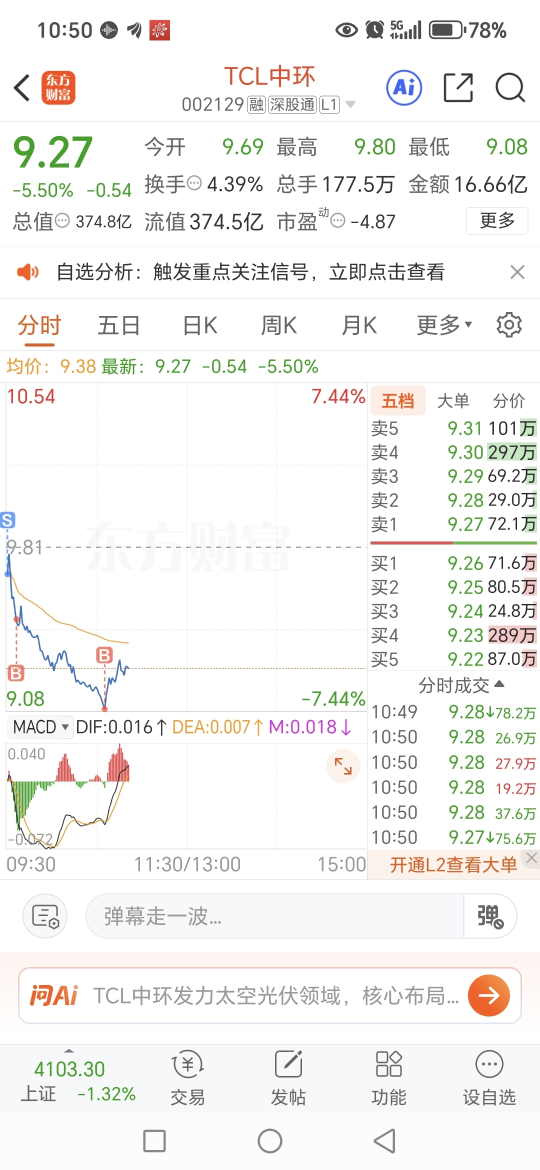 $TCL中环(SZ002129)$ 大意了,第一个买点进半,不过第二个买点买的好
