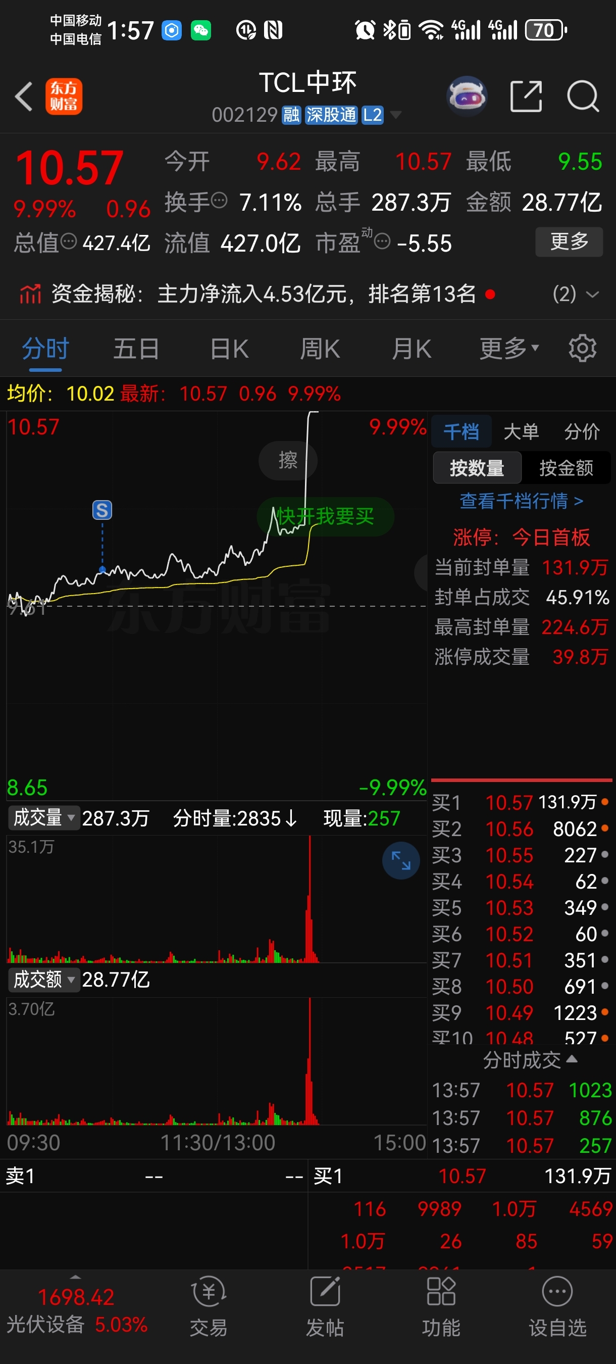$TCL中环(SZ002129)$ 大腿拍出血了
