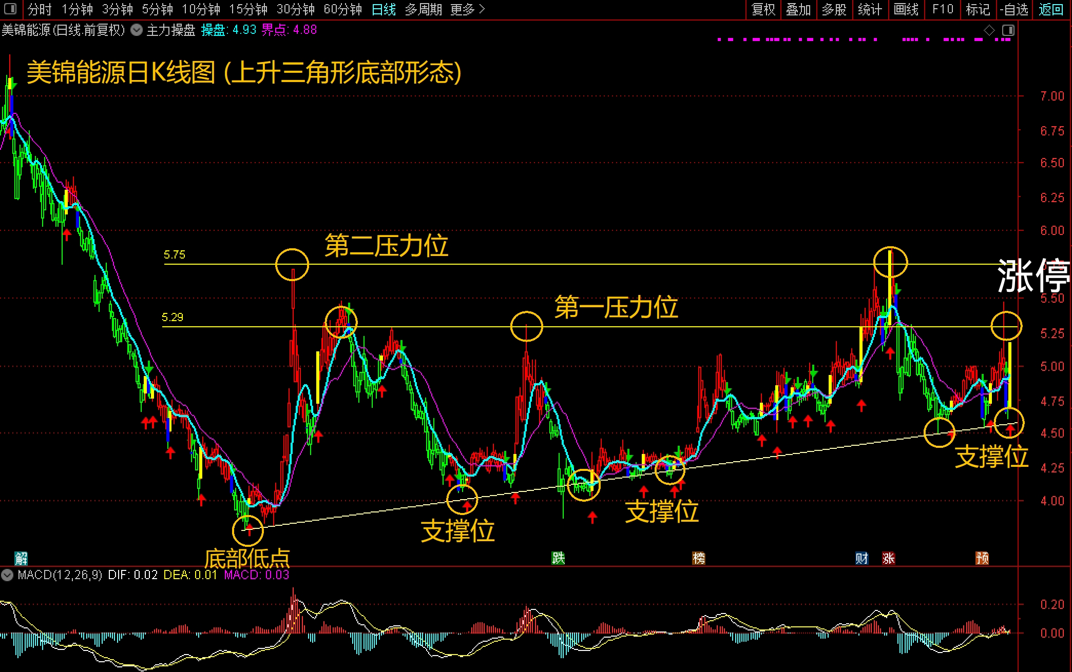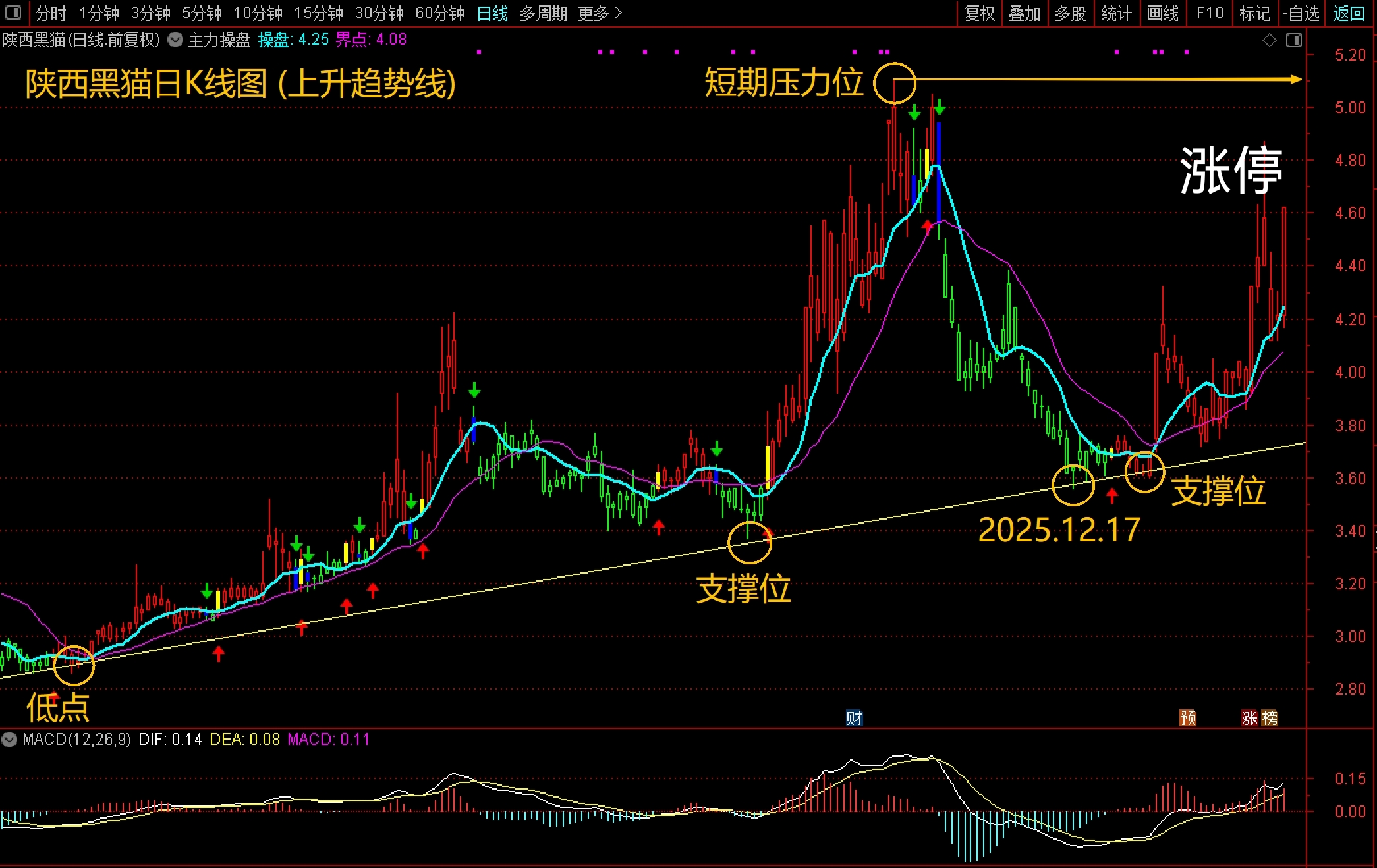近年比较忙,前两天暴力打压洗盘,打回上升趋势线附近,也可以说叫打回原形,很多亲都慌了神,各种消息轰炸我都回复不过来,有和我微风送信的亲们是幸运的,昨天还讨论呢,这不,聊着聊着就涨停了。