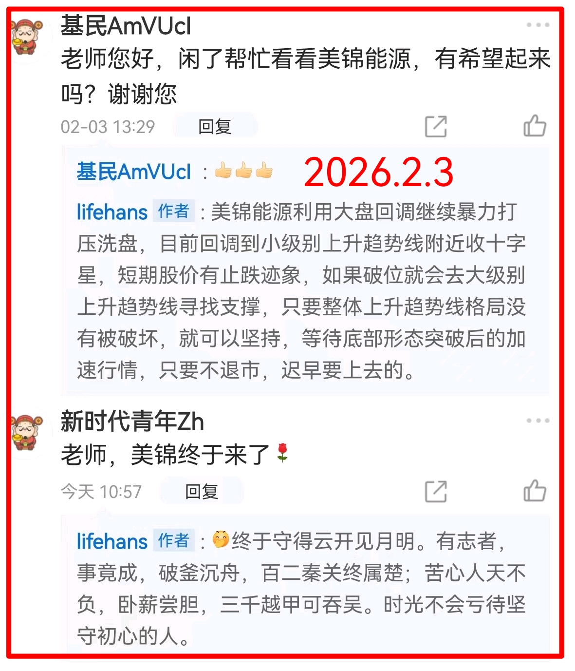 美锦能源就更不用说了,亲们微风送信问得最多、评论区回复也最多的,一直有说只要上涨趋势逻辑还在,只要不破位就应该坚持,只要不退市迟早要上去的。