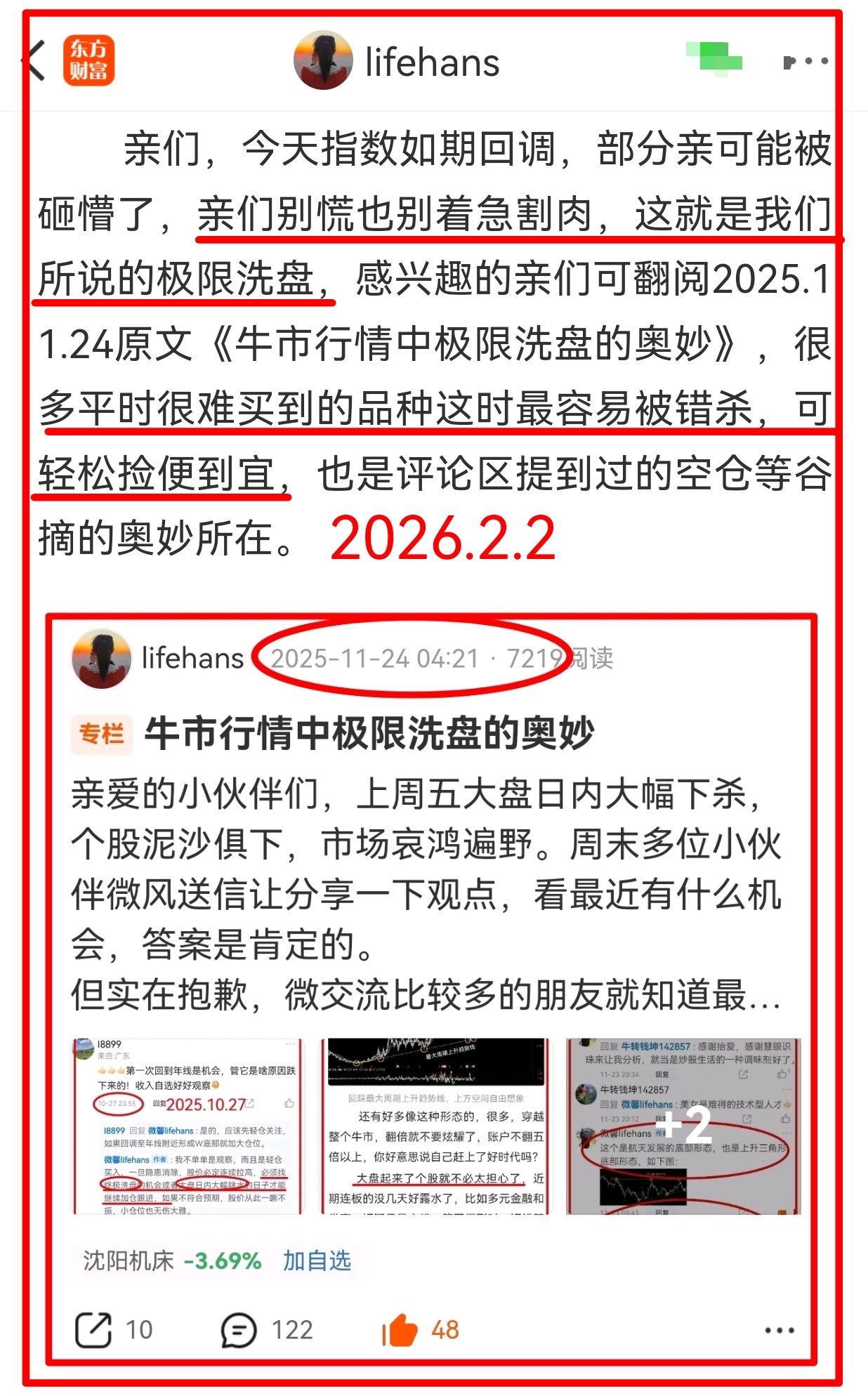 亲爱的小伙伴们,周一大盘日内杀跌,个股泥沙俱下,市场哀鸿遍野惨不忍睹,当天发帖以及微风送信和亲们一起感受,相互鼓励,一起煎熬,当天说了,别慌也别急着割肉,这就是我们所说牛市行情中的极限洗盘,主要杀高位品种,底部低位的逻辑是庄家利用大盘回调暴力打压洗盘,很快就会被打回年线或上升趋势线支撑位,并快速修正原上升趋势。