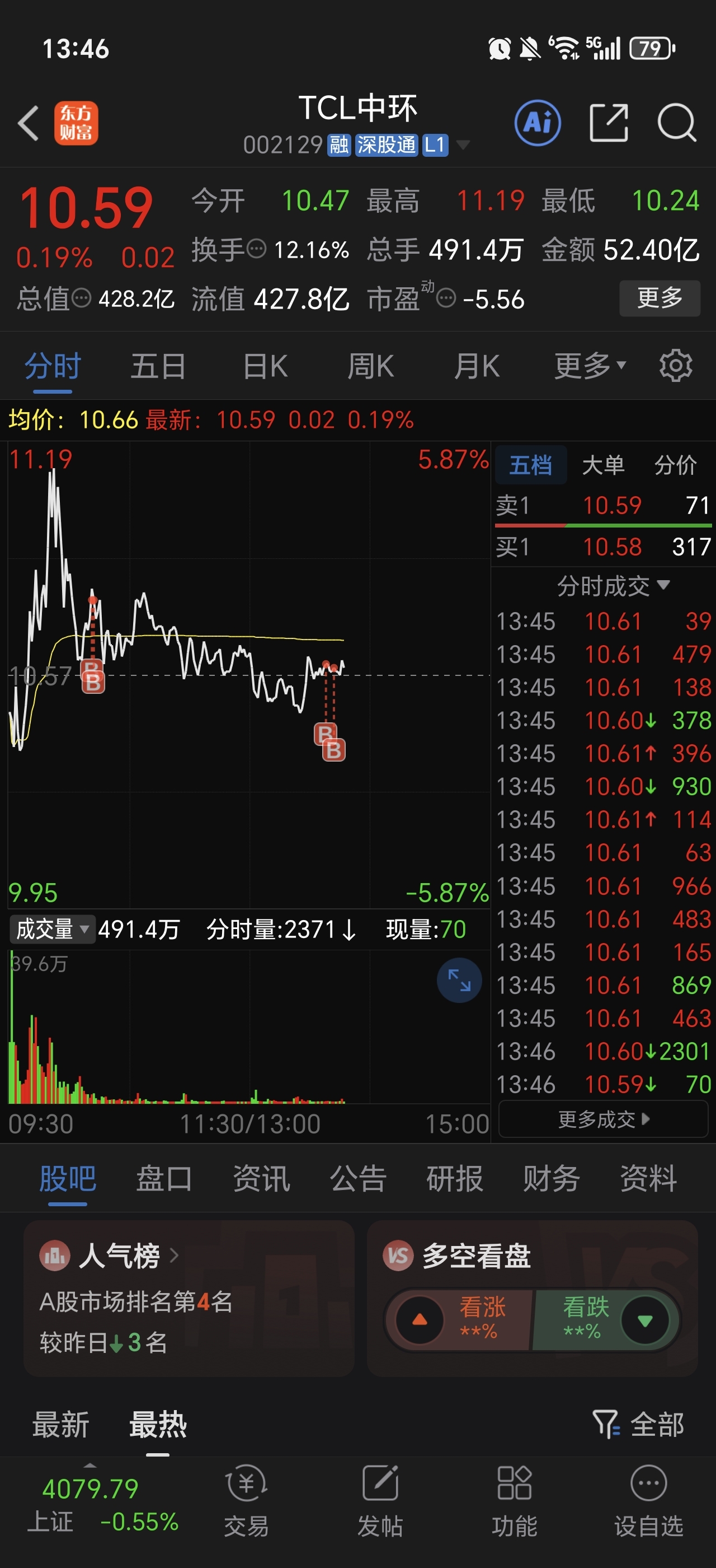 $TCL中环(SZ002129)$ 主力上午吃货吃爽了 随时可能爆发 有货的兄弟们耐心持股哈