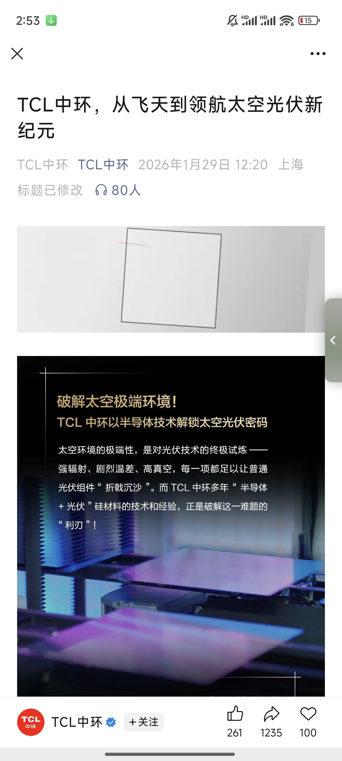 $TCL中环(SZ002129)$ Tcl公众号已经研发出太空光伏产品,1.29已经公布,相较于其他公司具有核心竞争力