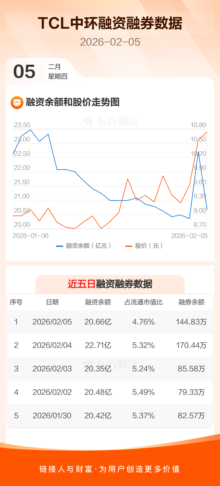 交易所最新数据显示,TCL中环于2026年2月5日获融资买入4.89亿元,融资偿还6.94亿元,当日融资净偿还2.05亿元。目前,该股融资余额20.66亿,占流通市值比例为4.76%。
