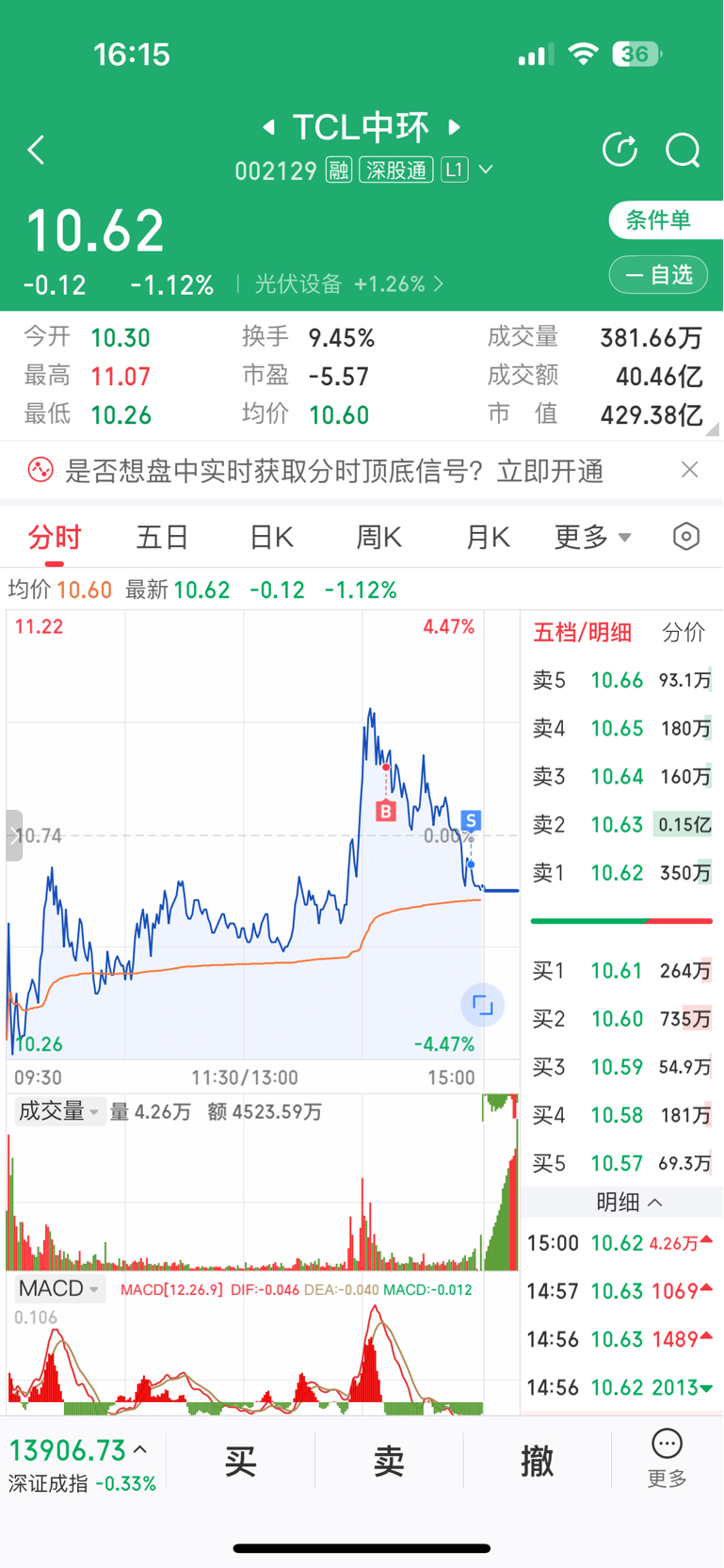 $TCL中环(SZ002129)$ 以为要起来加仓,做了个反T