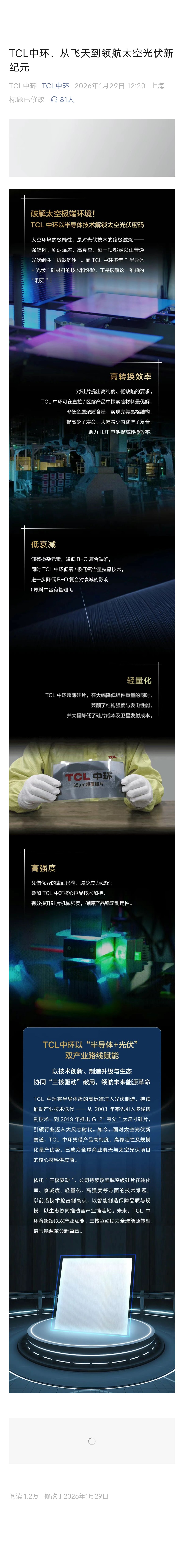$TCL中环(SZ002129)$ 商业航天绝对的核心,太空能源离不开的存在,绝对卡位!