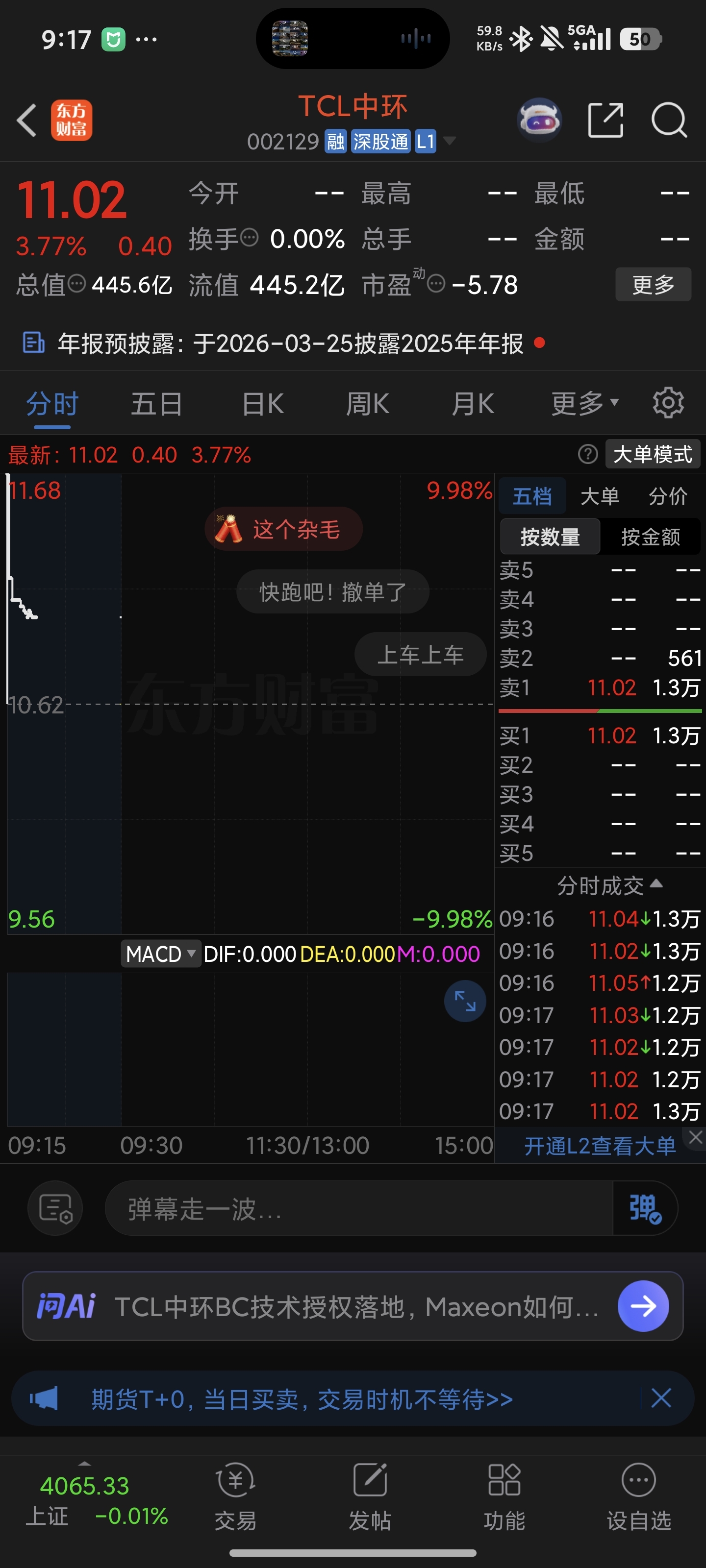 $TCL中环(SZ002129)$ 可能高开低走,甚至绿开低走