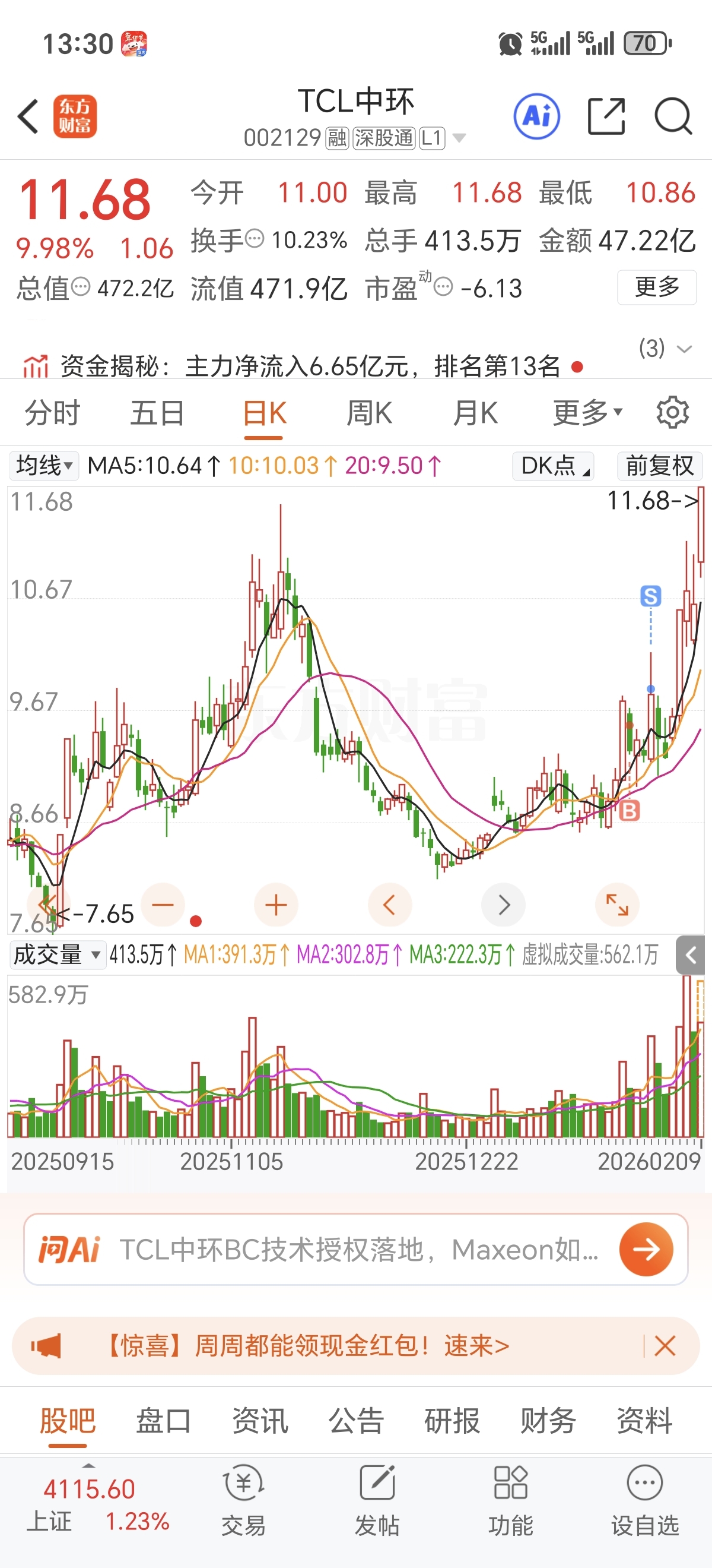 $TCL中环(SZ002129)$ 9.83就割肉了,草