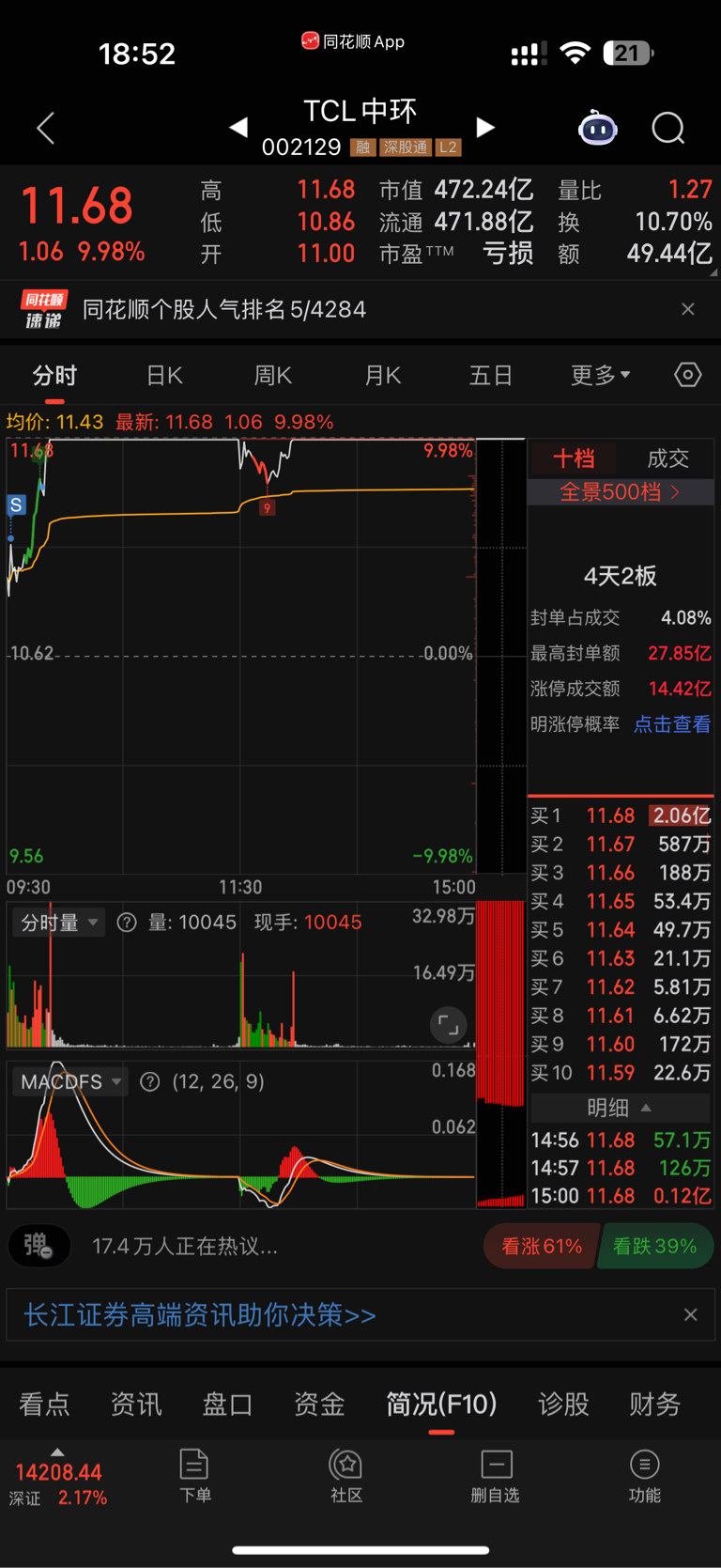 $TCL中环(SZ002129)$ 赚了4% 好开心啊