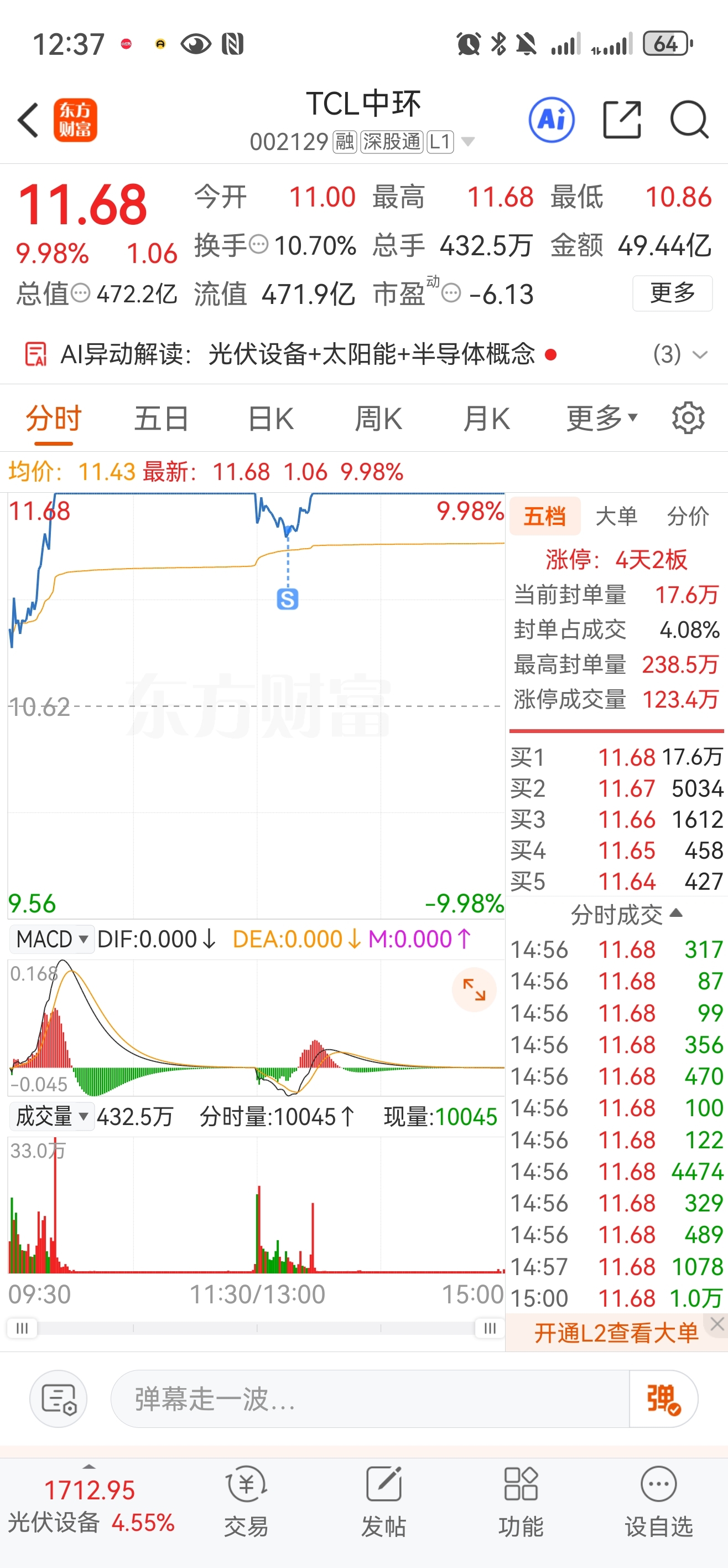 $TCL中环(SZ002129)$ 买点成卖了,明天还能上车吗
