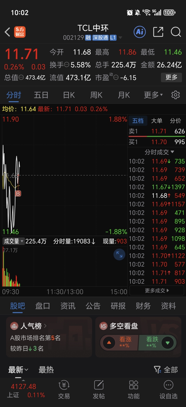 $TCL中环(SZ002129)$ 兄弟们,早盘已经反复试探11.52的支撑了,应该不会再回头了。在11.68附近大胆b。