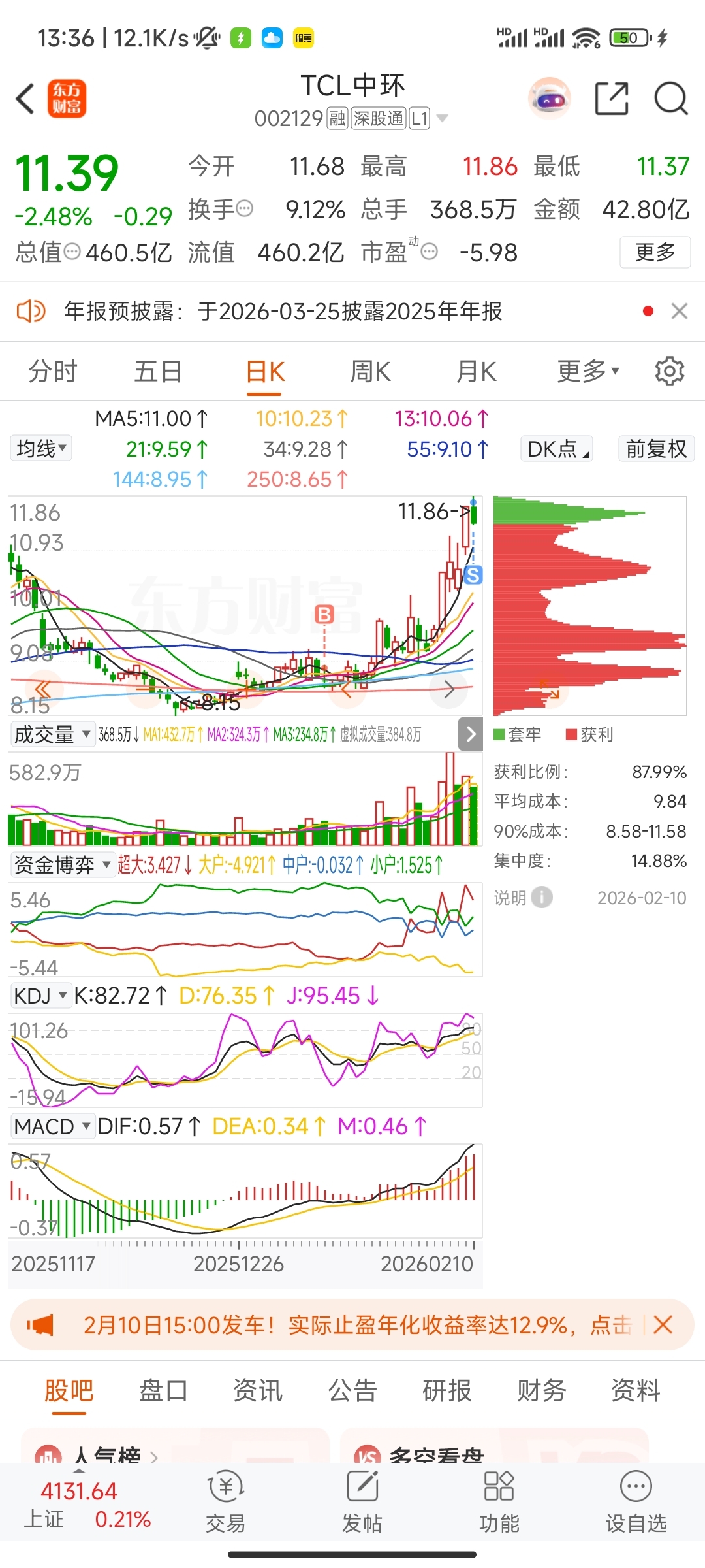 $TCL中环(SZ002129)$ 清仓了兄弟们,就100股,留下的马年马上发财