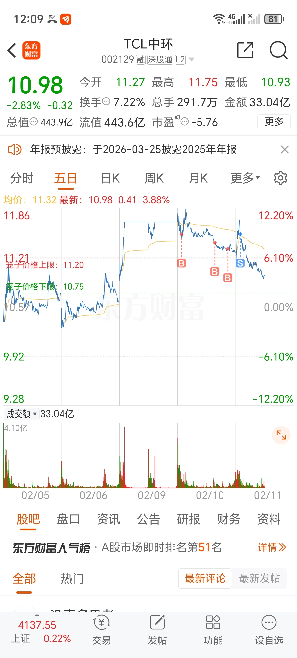 $TCL中环(SZ002129)$ 还好看的不对跑了。