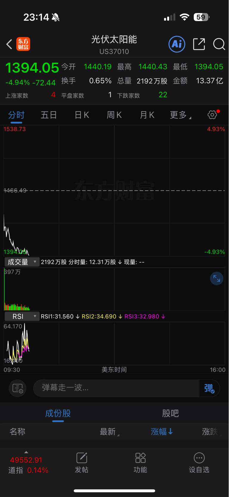 美股光伏板块这跌幅你们怕不怕,就问怕不怕