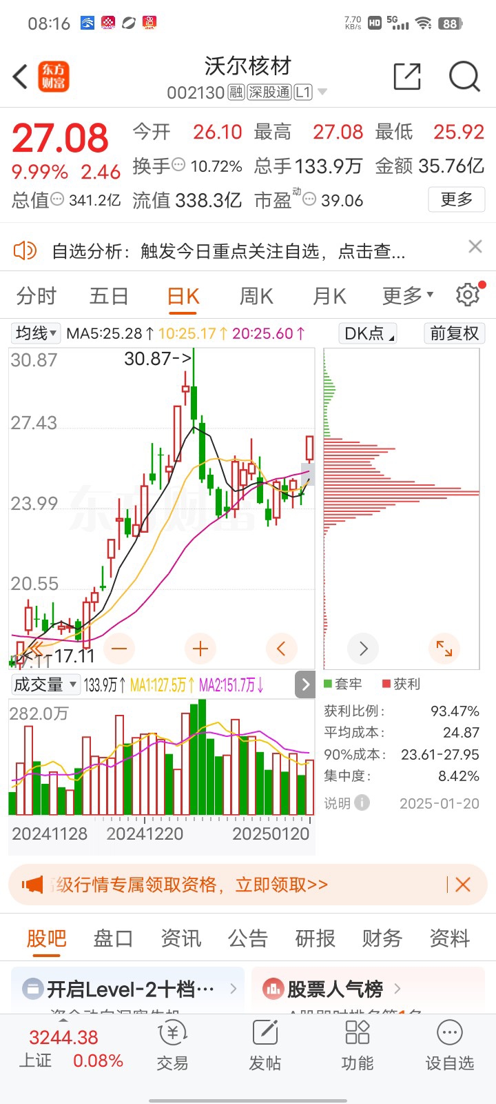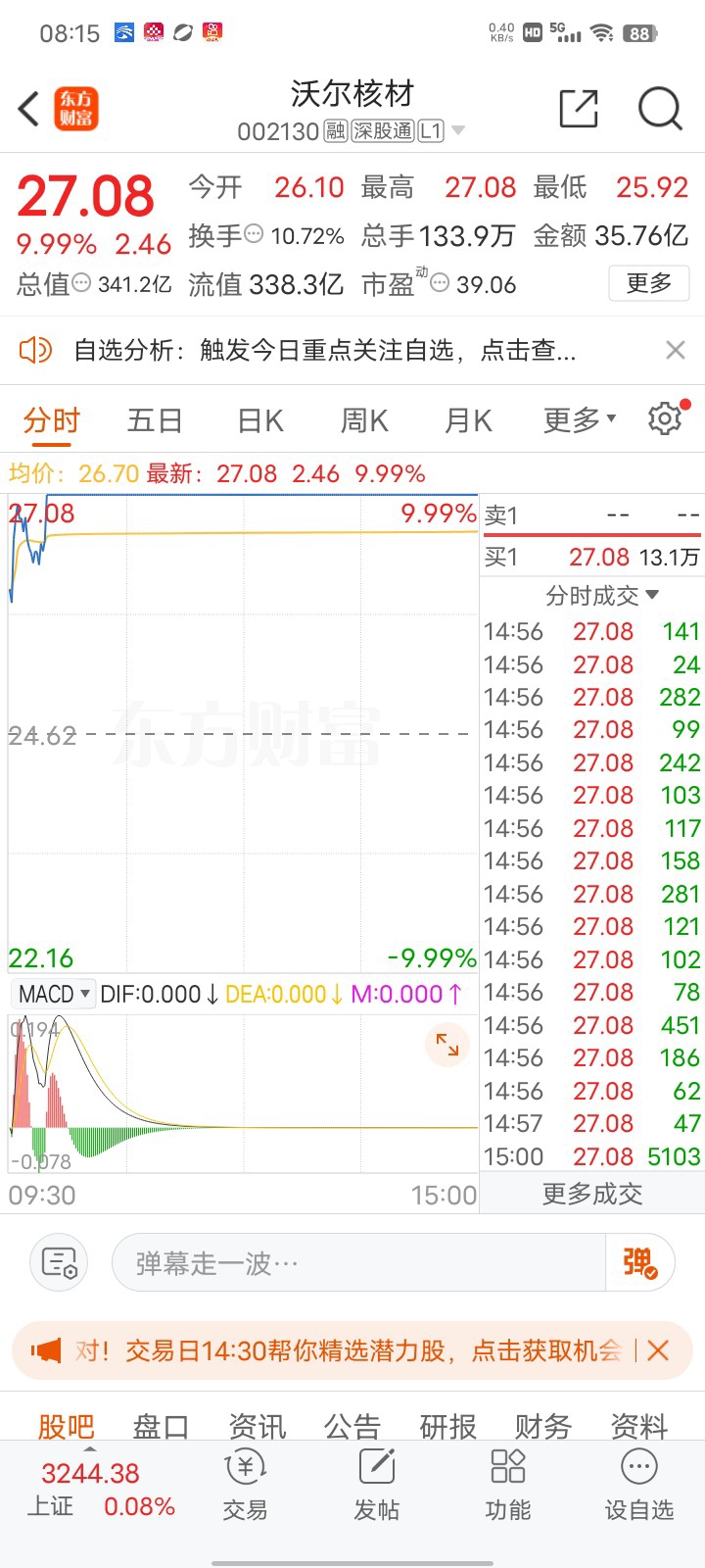 $沃尔核材(SZ002130)$ 开6点O1