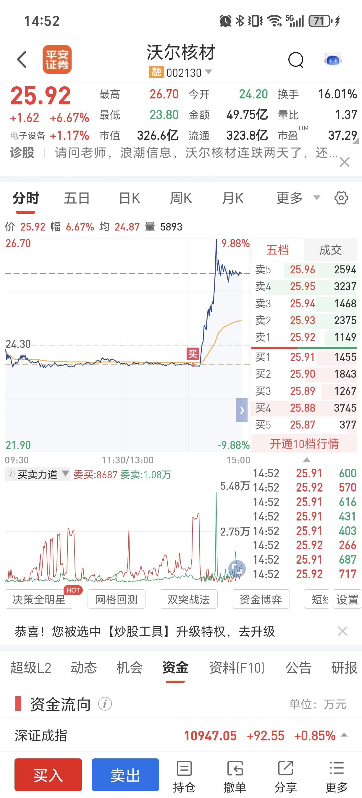 $沃尔核材(SZ002130)$ #炒股日记# 午睡起来,蒙圈了最厉害的一次操作,纪念一下,不管早上不管明天