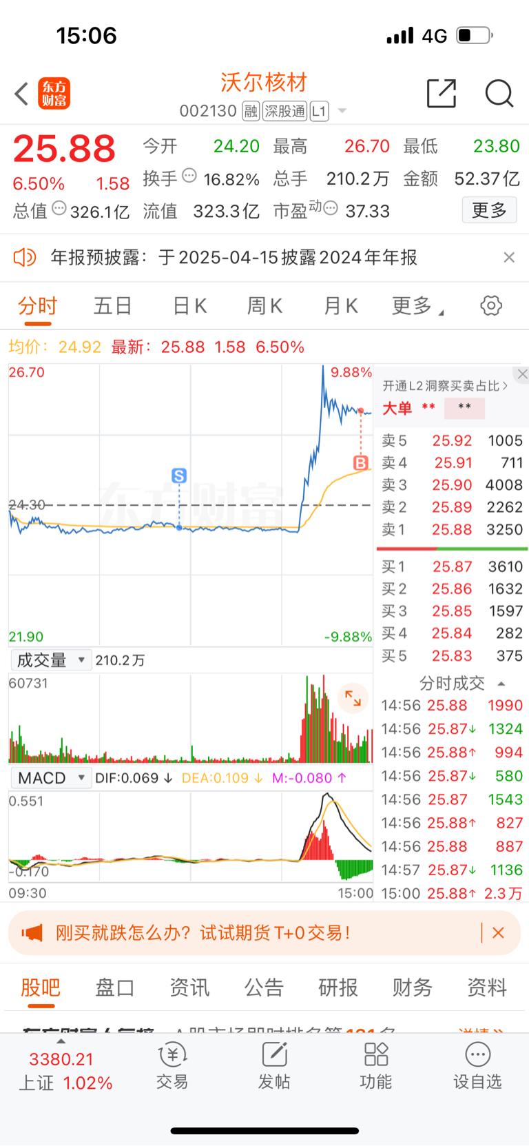 $沃尔核材(SZ002130)$ #炒股日记# 我真是个大韭菜,无缘无故亏了9个点。如果明天不及预期还要亏