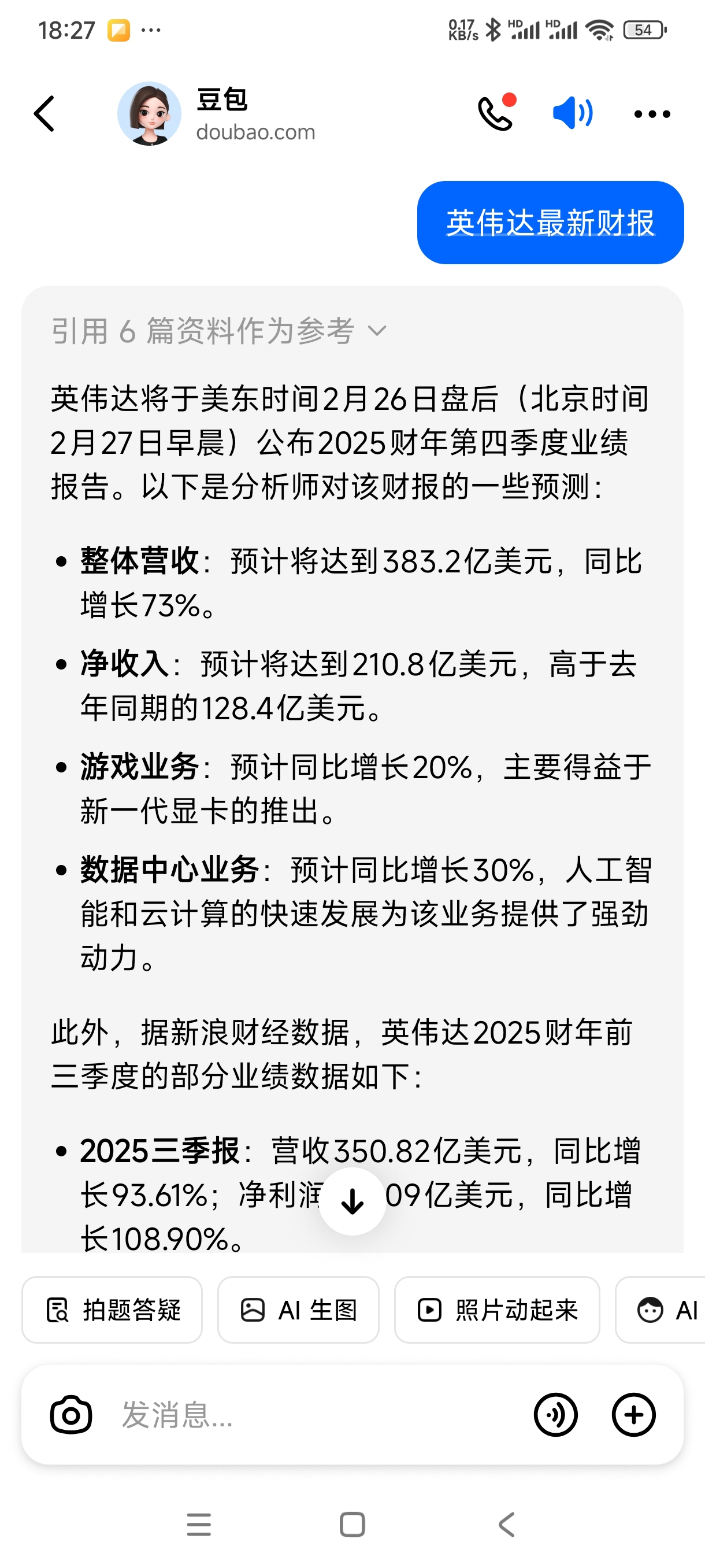 豆包搜索的数据显示英伟达第四季度业绩增长