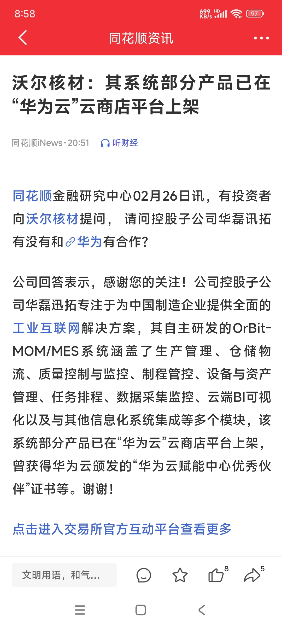 $沃尔核材(SZ002130)$ 罕见?爱国!!!