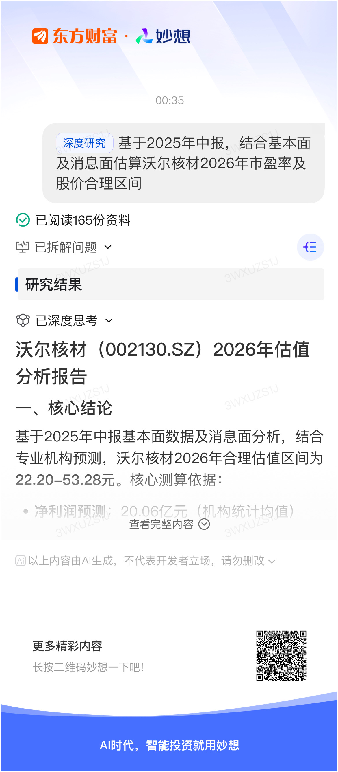 妙想一下:基于2025年中报,结合基本面及消息面估算沃尔核材2026年市盈率及股
