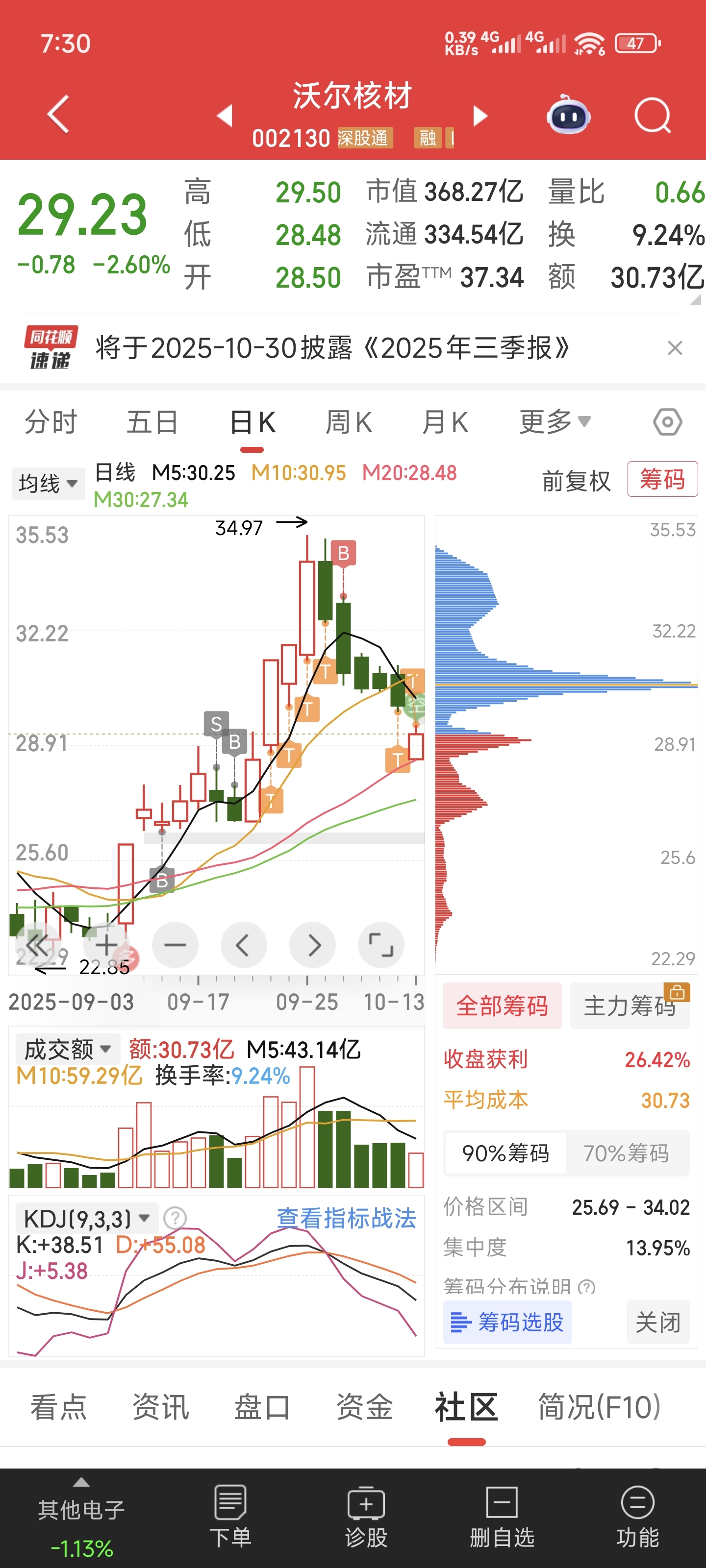 今天应该是一个缩量的企稳k,盘中下探29左右然后拉起?大概率是一个短期调整的底部