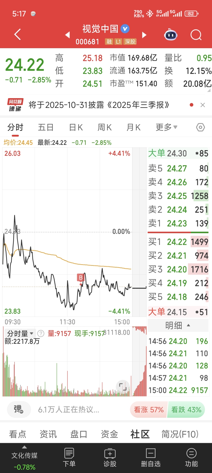 另外开了一个视觉中国,以五日线为基准做一下吧,不能再跟沃尔一样幻想了。。沃尔差不多把利润都跌没了,只能说主力残暴