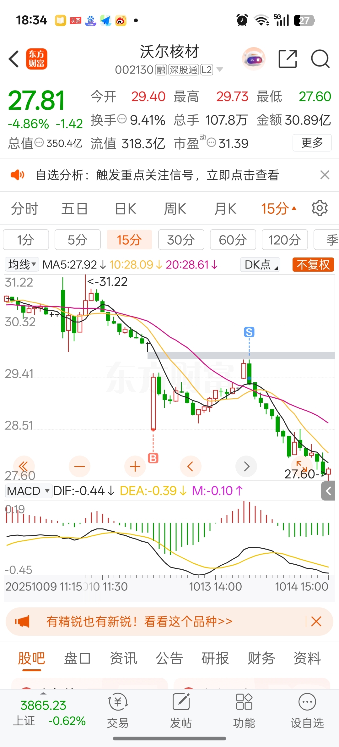 $沃尔核材(SZ002130)$ 嘿嘿,明天看情况接回,大A玩股票要快狠准,不能犹豫。