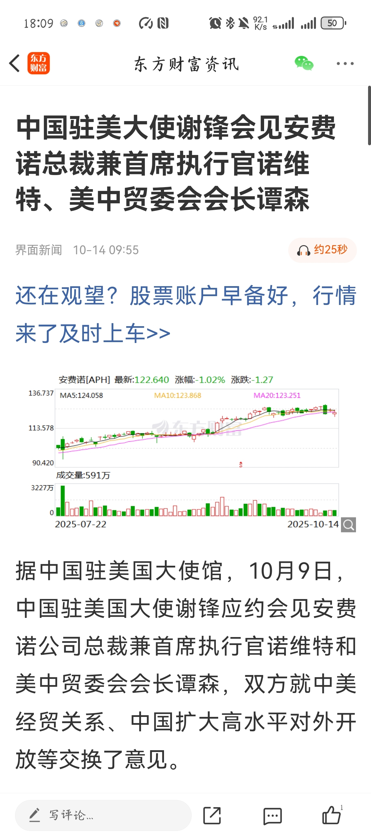 $沃尔核材(SZ002130)$ 这个才是真正的利好,看看安费诺盘前大涨