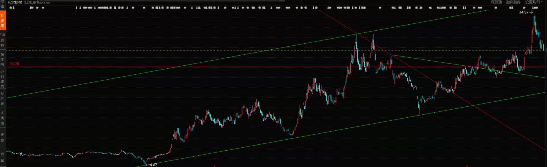 $沃尔核材(SZ002130)$ 突破24.28,走出加速主升。中期买点,长期趋势线支撑?