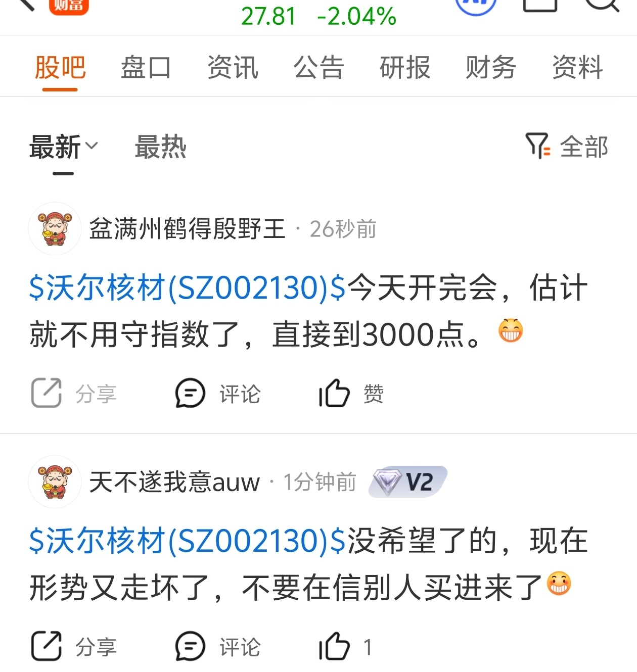 温馨提示: 1.根据《证券法》规定,禁止编造、传播虚假信息或者误导性信息,扰乱证券市场;2.用户在本社区发表的所有资料、言论等仅代表个人观点,与本网站立场无关,不对您构成任何投资建议。用户应基于自己的独立判断,自行决定证券投资并承担相应风险。《东方财富社区管理规定》