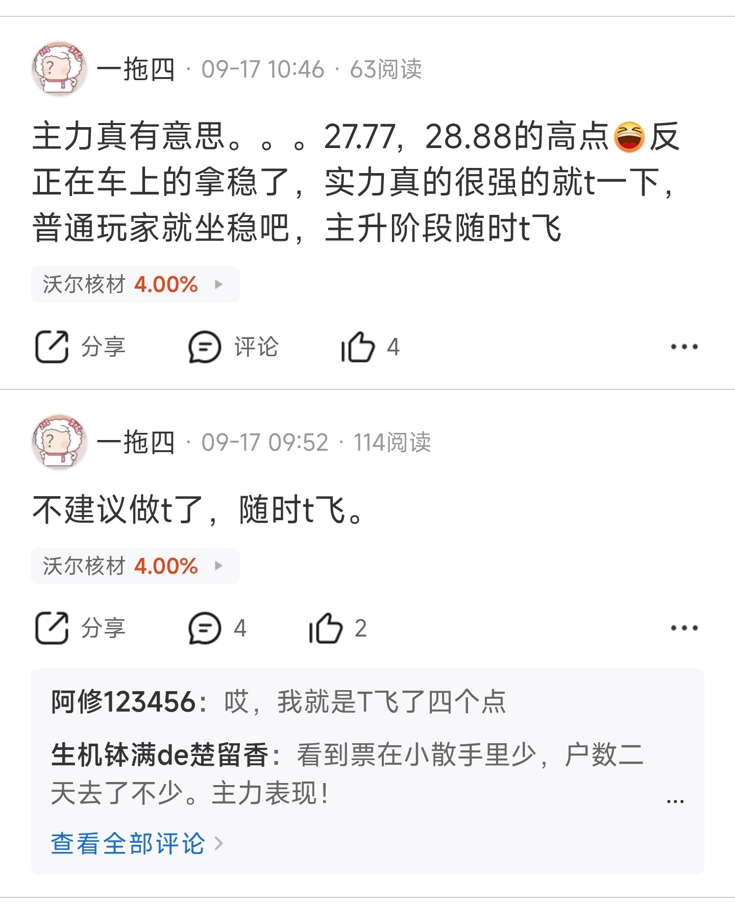 温馨提示: 1.根据《证券法》规定,禁止编造、传播虚假信息或者误导性信息,扰乱证券市场;2.用户在本社区发表的所有资料、言论等仅代表个人观点,与本网站立场无关,不对您构成任何投资建议。用户应基于自己的独立判断,自行决定证券投资并承担相应风险。《东方财富社区管理规定》