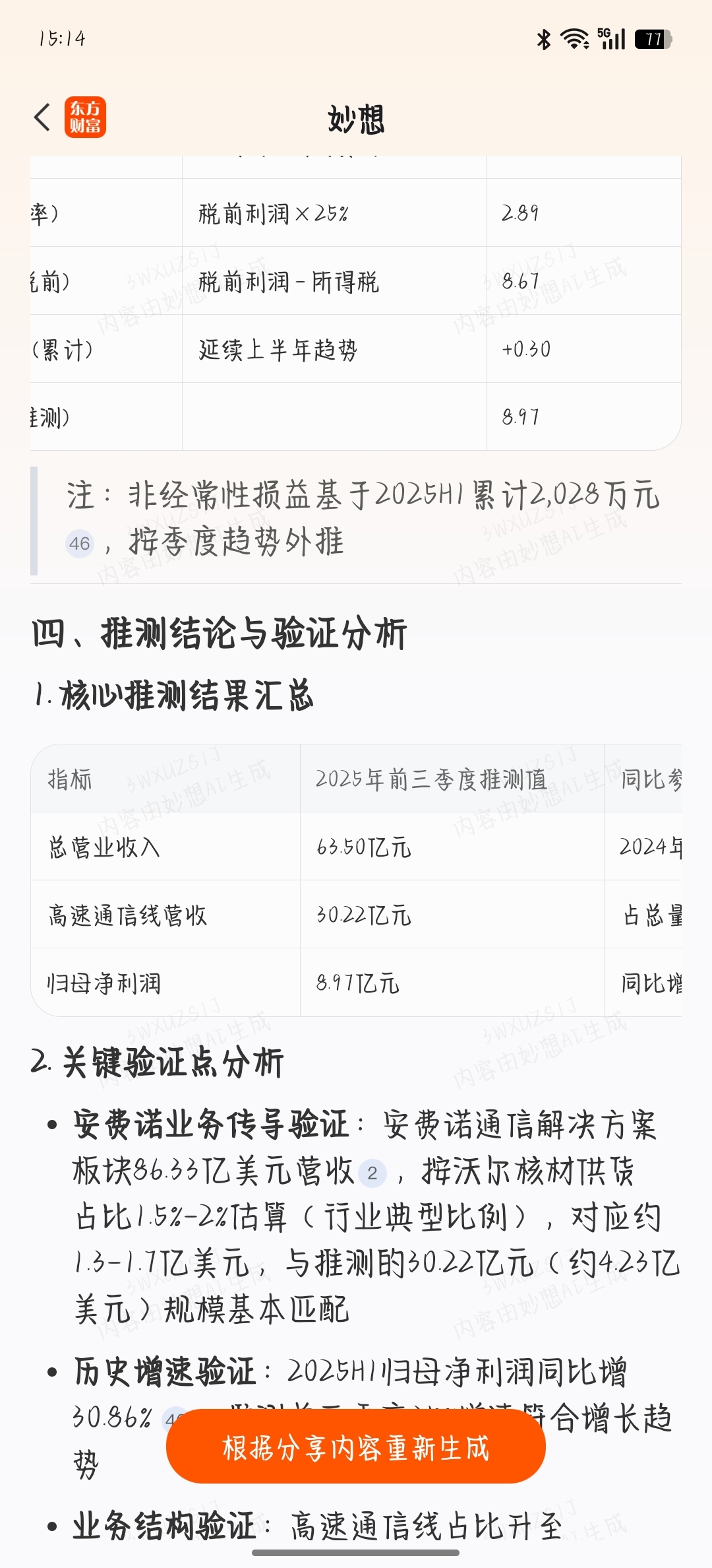 $沃尔核材(SZ002130)$ 东财妙想给出的业绩推测,前三季度接近 10 亿,全年接近 15 亿,科技牛市给到 50 倍泡沫,合理市值应该是 15*50=750 亿。这还只是按照 25 年计算,26 年 Q2 累计 35 台发泡机,叠加充电枪带来的增益,到 27 年业绩有望提升到 25~30 亿,到 27 年即使给到 30PE,合理市值仍然有 750 亿,那么沃尔届时合理的股价应该是多少呢?