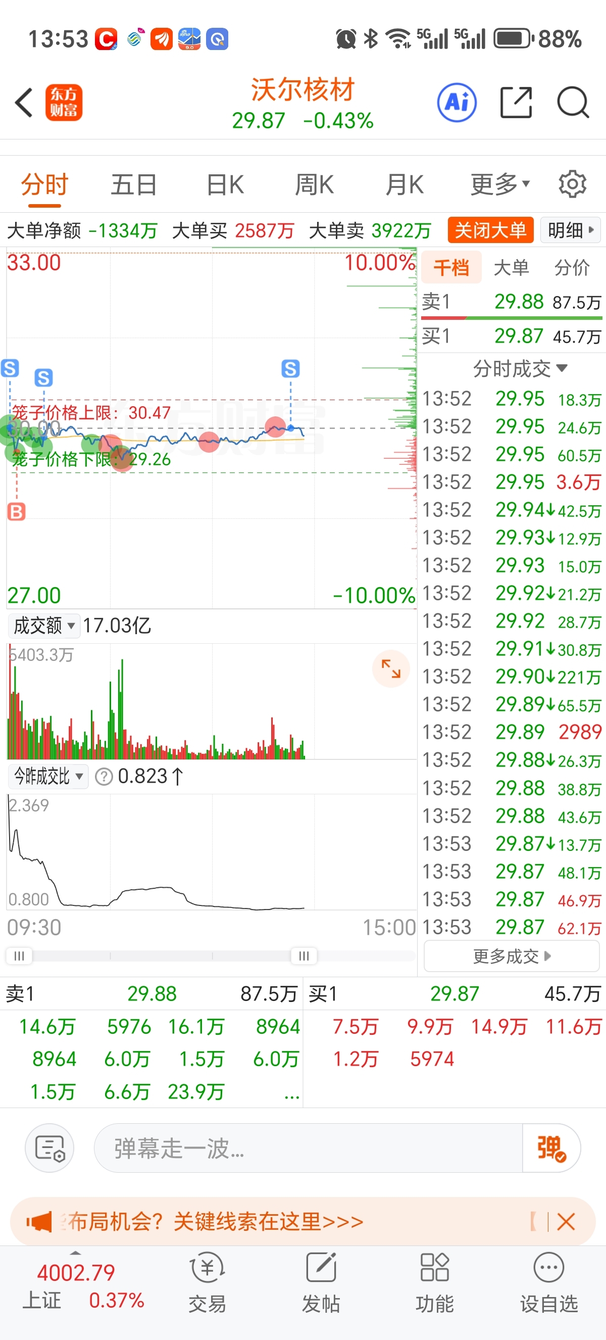 $沃尔核材(SZ002130)$ 下午百分之60的大盘要跳水,可想而知我儿会怎么样,减仓尾盘进