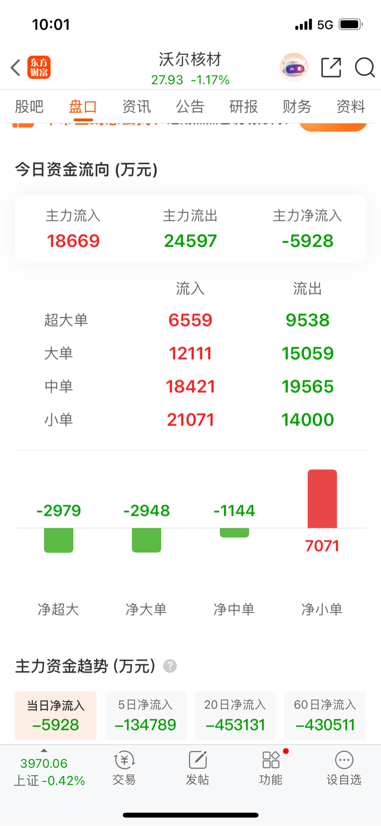 $沃尔核材(SZ002130)$ 大单出散户小单接