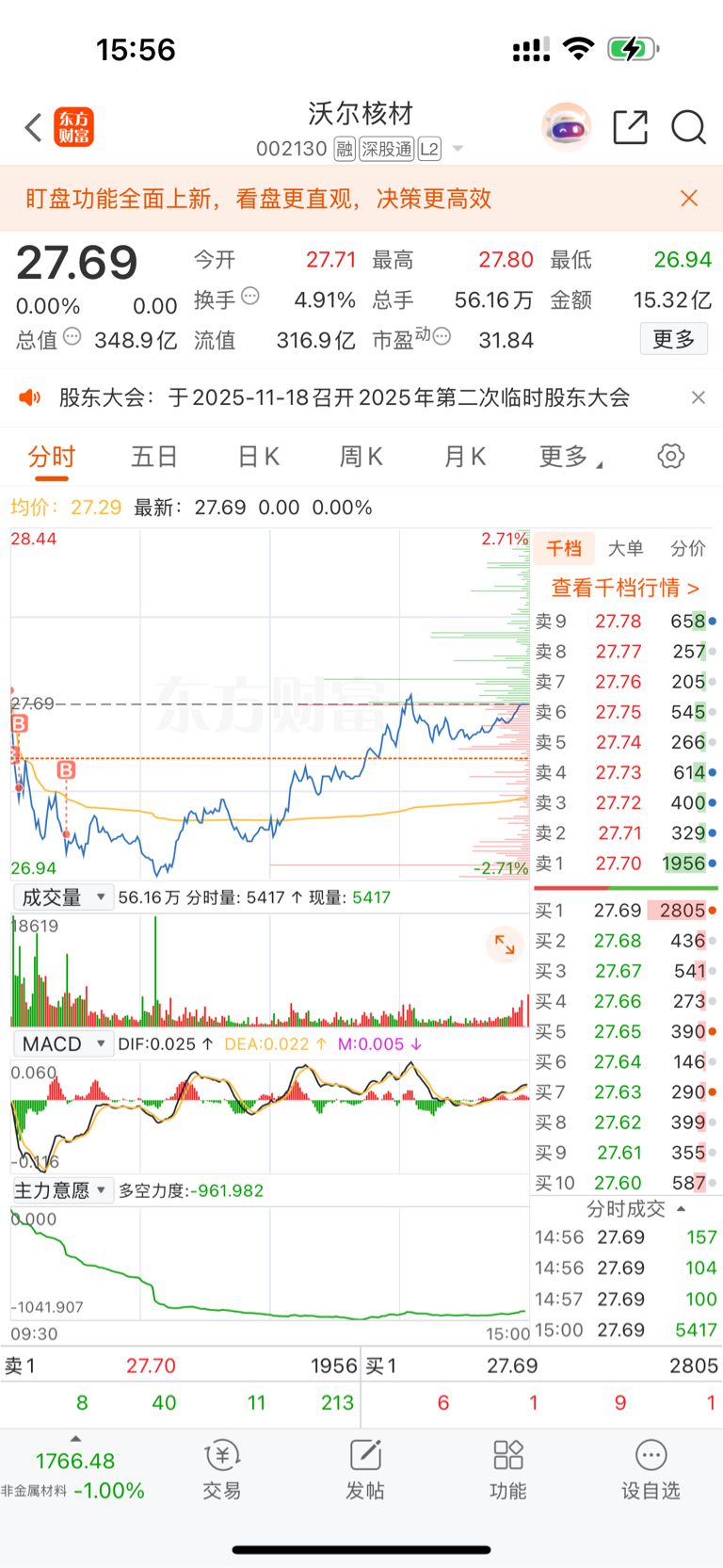 $沃尔核材(SZ002130)$ 感谢主力不杀之恩