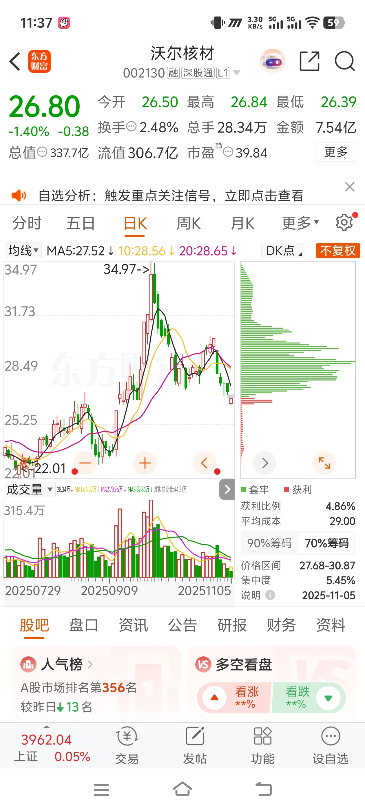 $沃尔核材(SZ002130)$ 稳住都是一样的