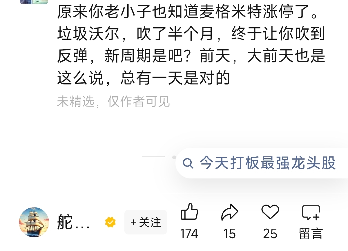 郑重声明:用户在财富号/股吧/博客等社区发表的所有信息(包括但不限于文字、视频、音频、数据及图表)仅代表个人观点,与本网站立场无关,不对您构成任何投资建议,据此操作风险自担。请勿相信代客理财、免费荐股和炒股培训等宣传内容,远离非法证券活动。请勿添加发言用户的手机号码、公众号、微博、微信及QQ等信息,谨防上当受骗!